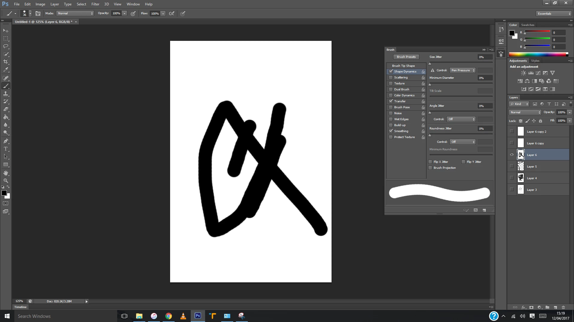 i'm trying to attempt this tutorial here: How to Setup a Hair Brush in Photoshop however i notice my brush is still the same after clicking shape dynamics and turning on the pen pressure control