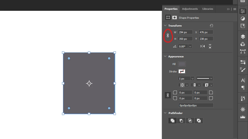 The "link shape width and height" option in the Properties Panel under Transform is not working for me. Whenever I click it, it won't stay activated to allow me to transform a shape while keeping its aspect ratio.