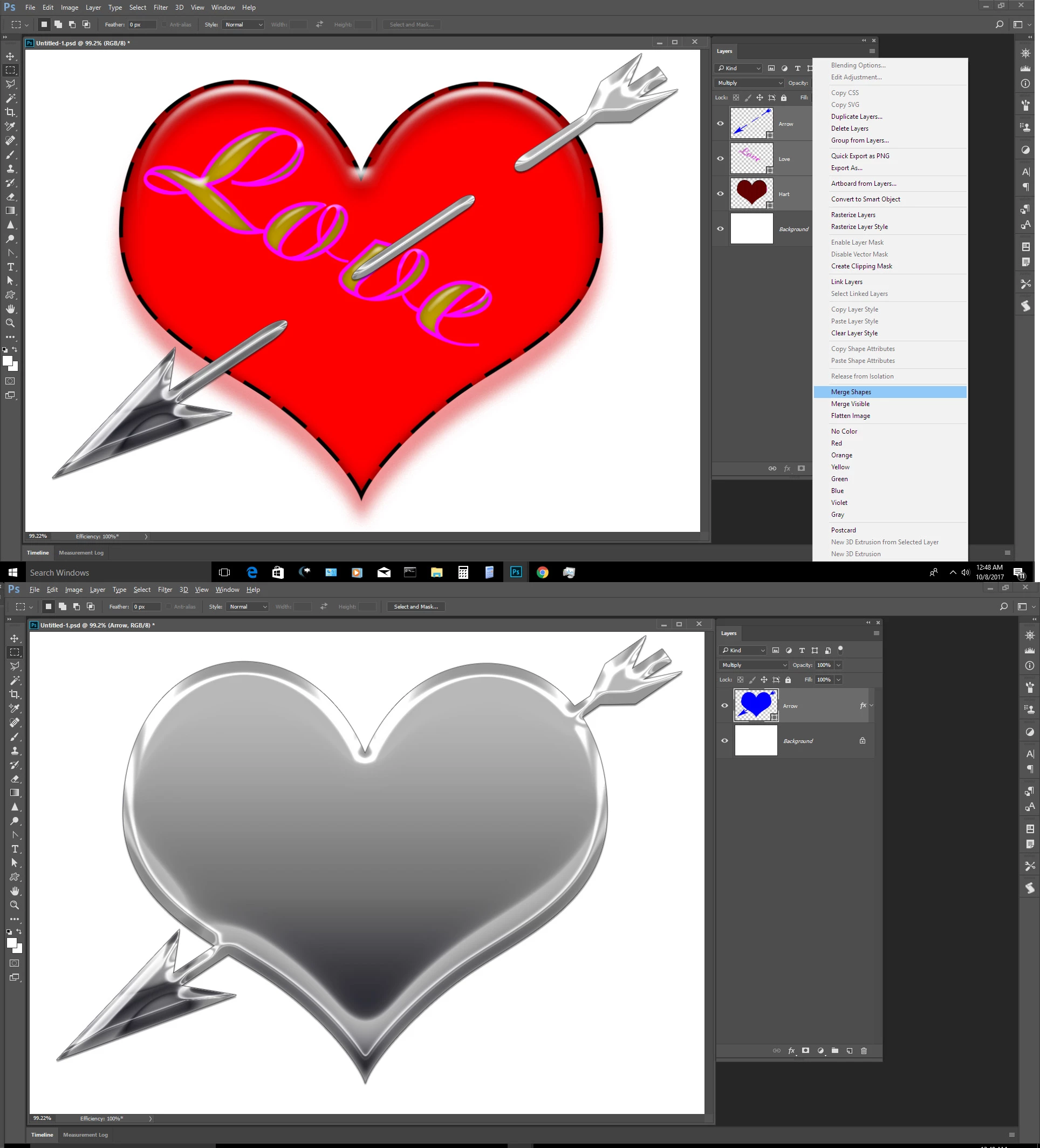 I drew a few shapes with the pen tool and had them filled in. This worked just fine. I wanted them all on one layer, so I selected them and hit merge layer. The stroke and fill disappeared and won't come back. The shapes menu says the stroke and fill are on but I can't see anything. Turning them on and off or changing the color doesn't help. Restarting photoshop doesn't help. Going into paths and remaking the shape doesn't help. I really don't want to redraw this whole shape- where did my color go? I'm working in the Mac version of CS6.