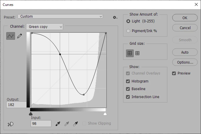 Here, I used Curves to make the solid blacks turn white, and make the lines darker: