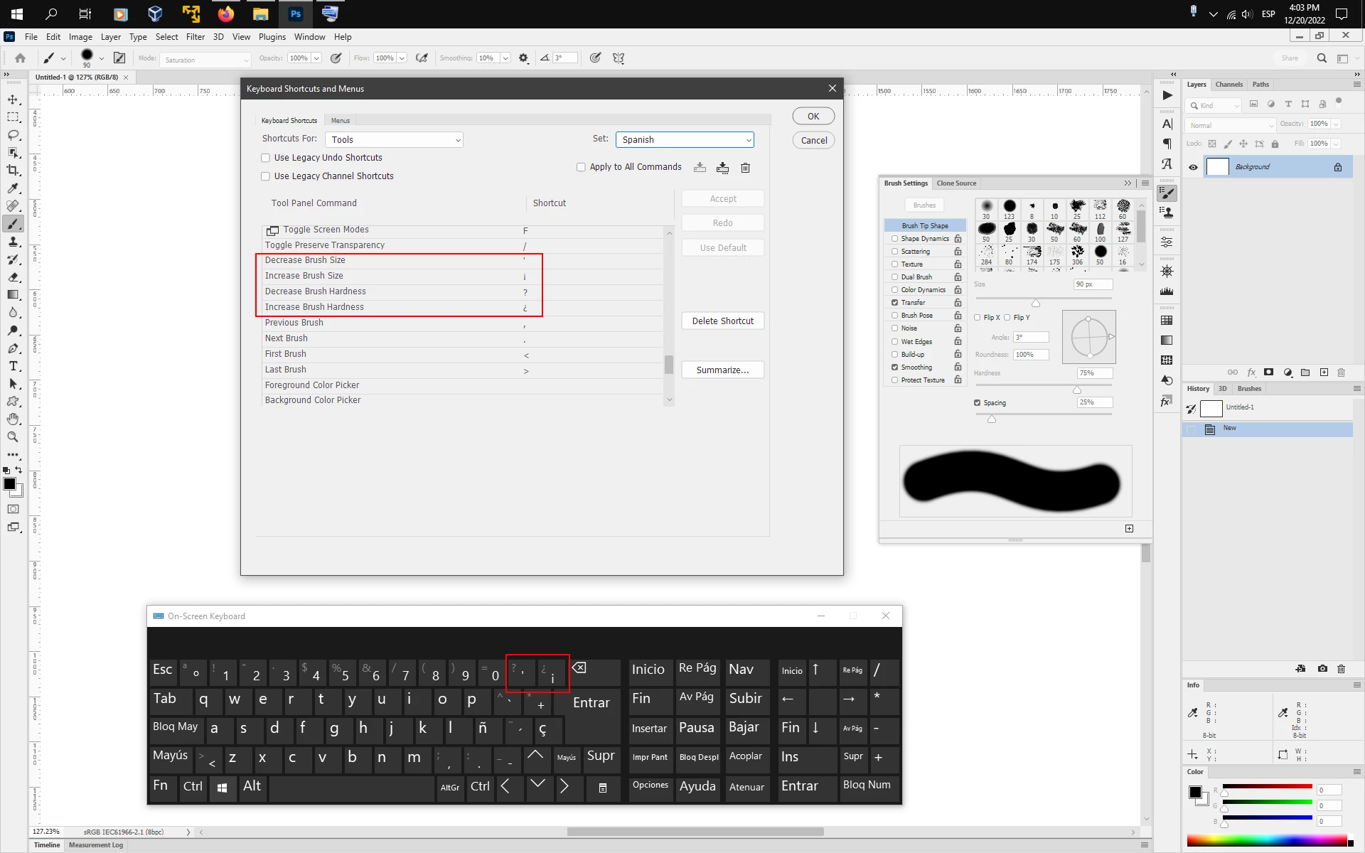 I just bought photoshop, (I use windows 10, spain I'm from spain) and I need to know if you are able to tell me how I can get the following shortcut configured: