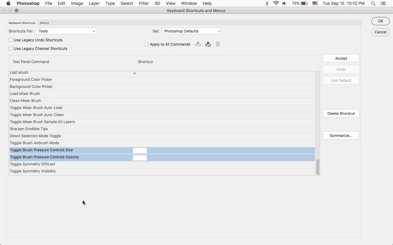 In photoshop go to Edit>Keyboard Shortcuts and look under Tools