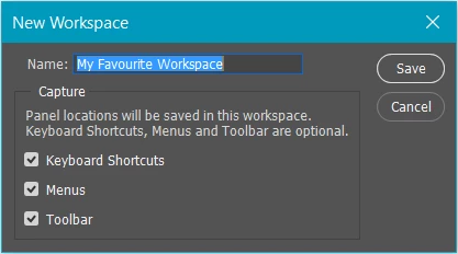 A wee tip about shortcuts, but only relevant if you are using CC. Basically, there are no spare shortcuts, but the fix is that you can save custom shortcuts with custom workspaces. So if you set Shift F4 to increase by 10%, and Alt Shift F4 to increase by 1%, and did the same with F5 to downsize, then save those with your favourite workspace like so: