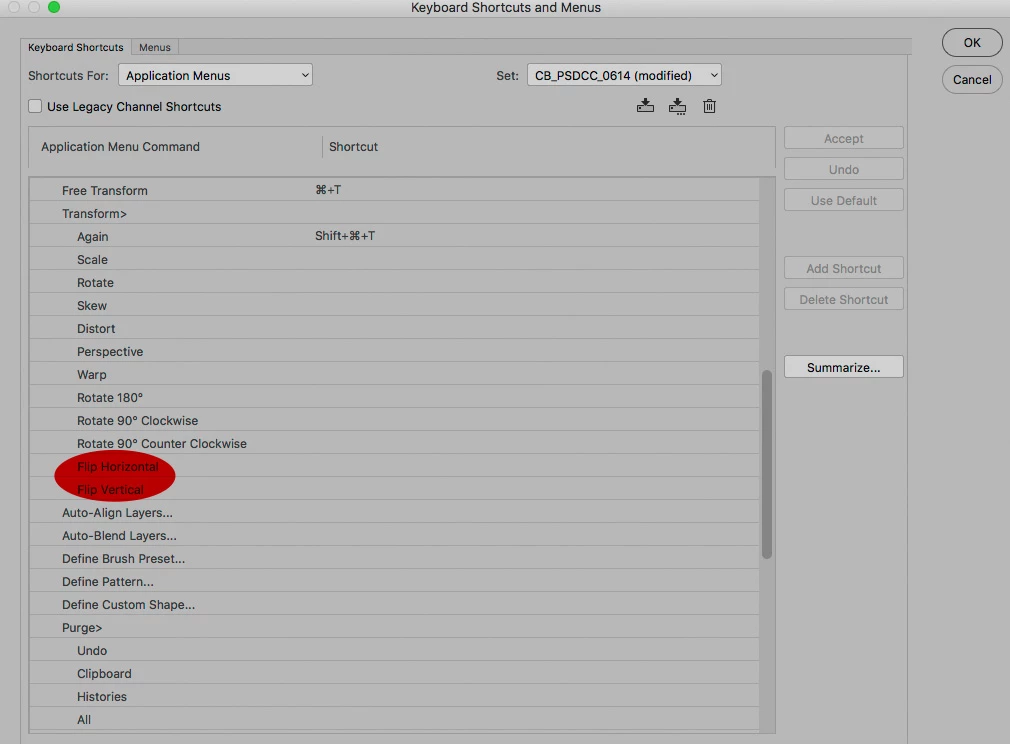Shortcut to flip a layer horizontal/vertical