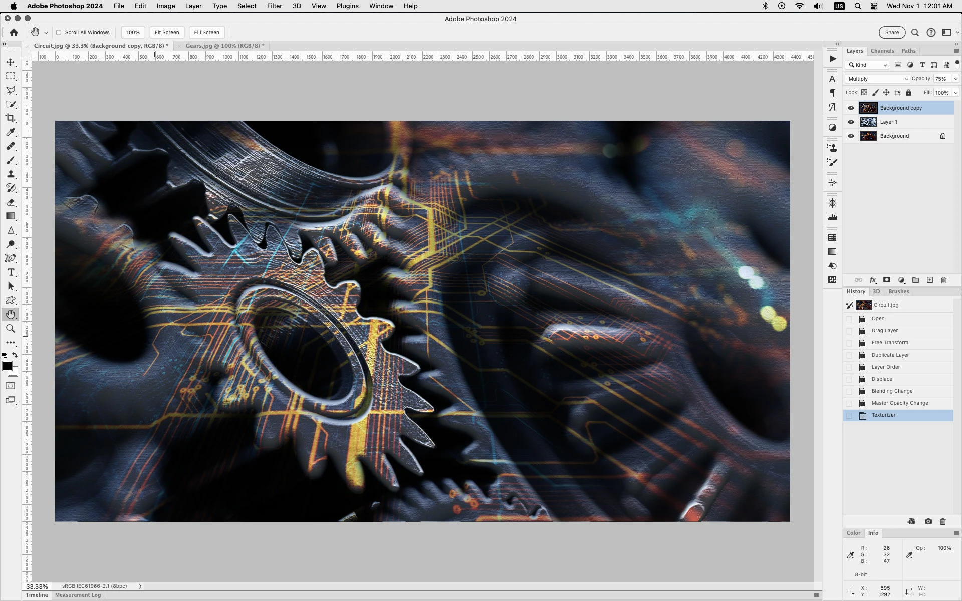 I'd like to "colour in" or shrink-wrap the gears with the circuit image.