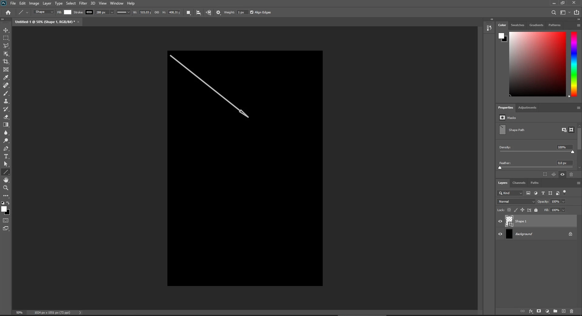You have a black stroke on your line that is 200px that is wiping out the white fill that you have, so when you view you black line on the black background, all you see is black. Change the bg color or reduce the stroke size, or change it to another color.