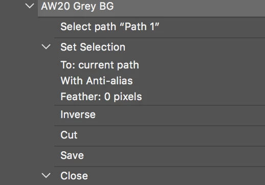 I'm having an issue with some very simple action commands. I'm trying to select a path, invert selection, cut the pixels from the background then save.