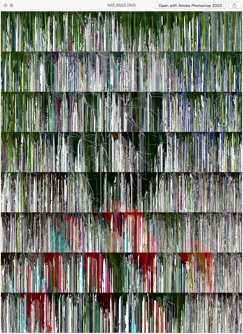 The other issue you may run into is support for the specific DNG format on such an old OS like High Sierra. It may be corrupting them because it cant read the data coming from Monterey and current PS builds.