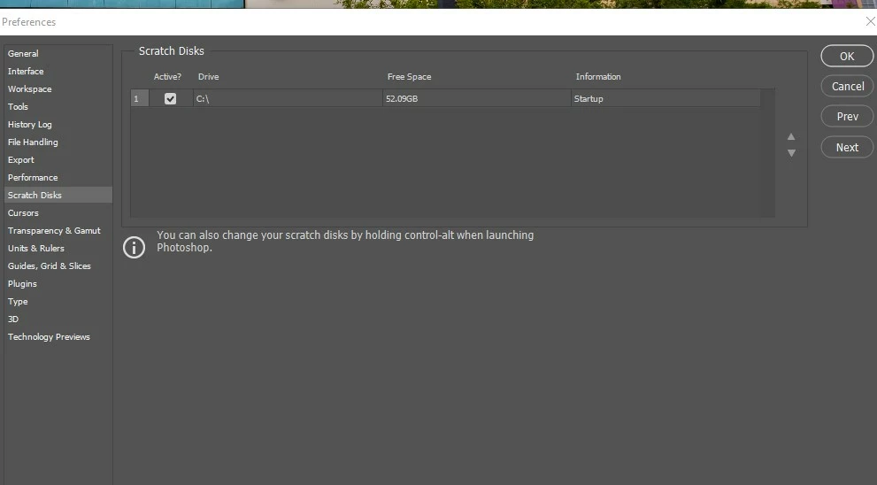 - Changing Photoshop preferences to allot for less memory usage (NO change whatsoever).