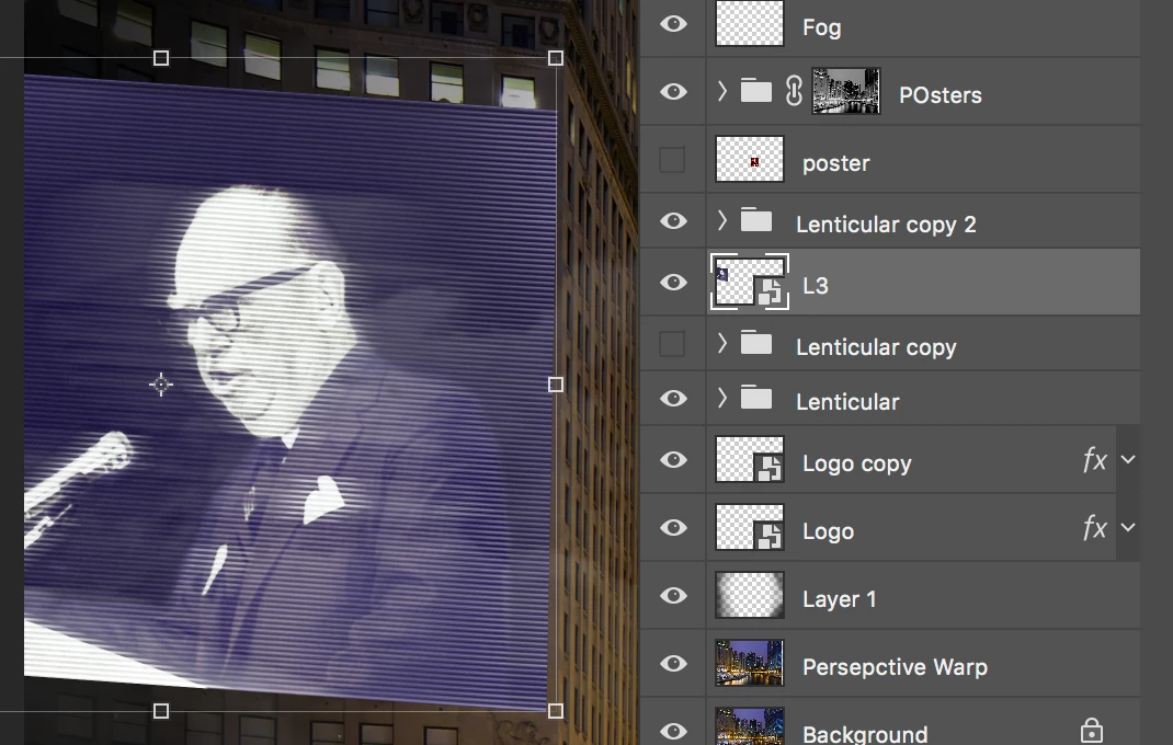 I have multiple layers in a set L3 that need to warp matching the building curvature.