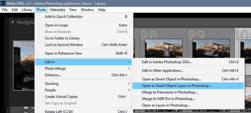Is there a function that allows you to load images from the bridge into Photoshop as a stack so that all loaded layers/images are smart objects... so that each layer leads back to the RAW? Is there a way to enable this function in Adobe. This may come with an update