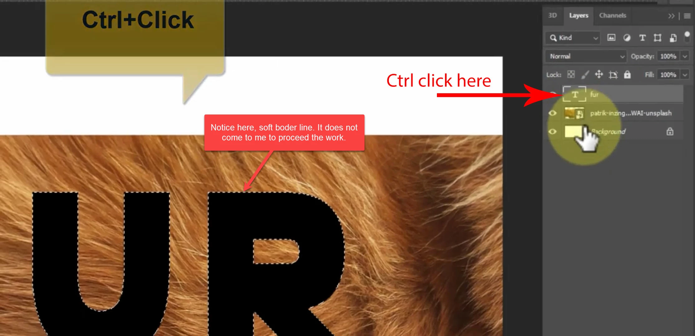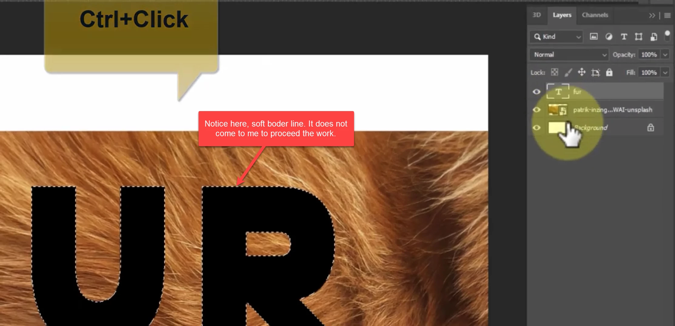 Did you Ctrl click on the Text layer thumbnail (fur) in the layers panel?