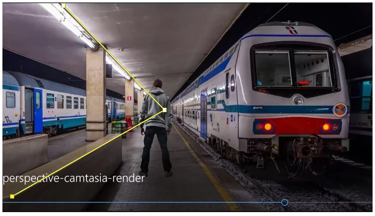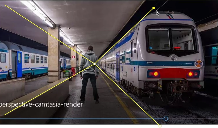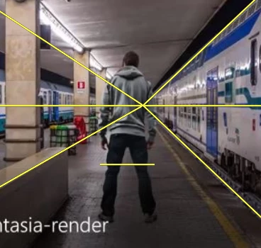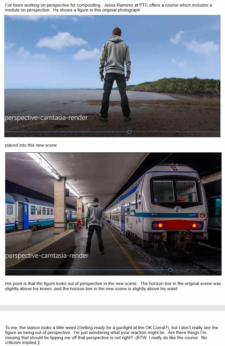 When you look at the train scene it’s from an average standing height. You can tell because the perspective lines disappear at about the height your eyes would be when standing by the train. This is why the figure doesn’t work in the second scene. The figure was photographed from a low angle while the train was photographed at a more standard standing height.
