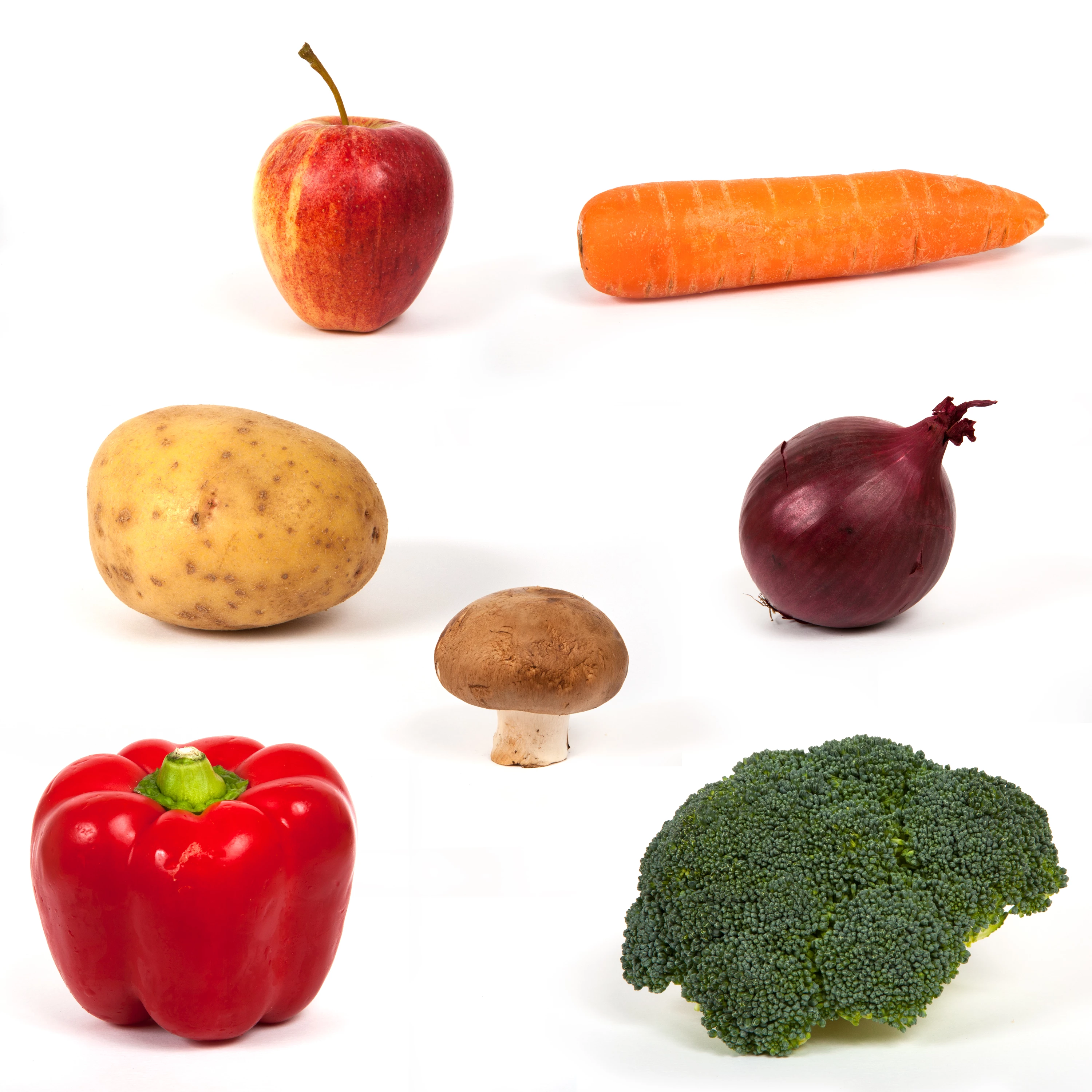 I was reading the other day about the 7 a day fruit and vegetable advice for healthy eating and though I wonder what the Photoshop folk would make from a group of fruit and vegetables. So here they are - 7 fruit and vegetables. I cheated on the healthy bit and stuck a potato in there, and a mushroom is also probably bending the "rules". Of course for those in the UK, where the campaign was 5 a day, then you only need to use five of them