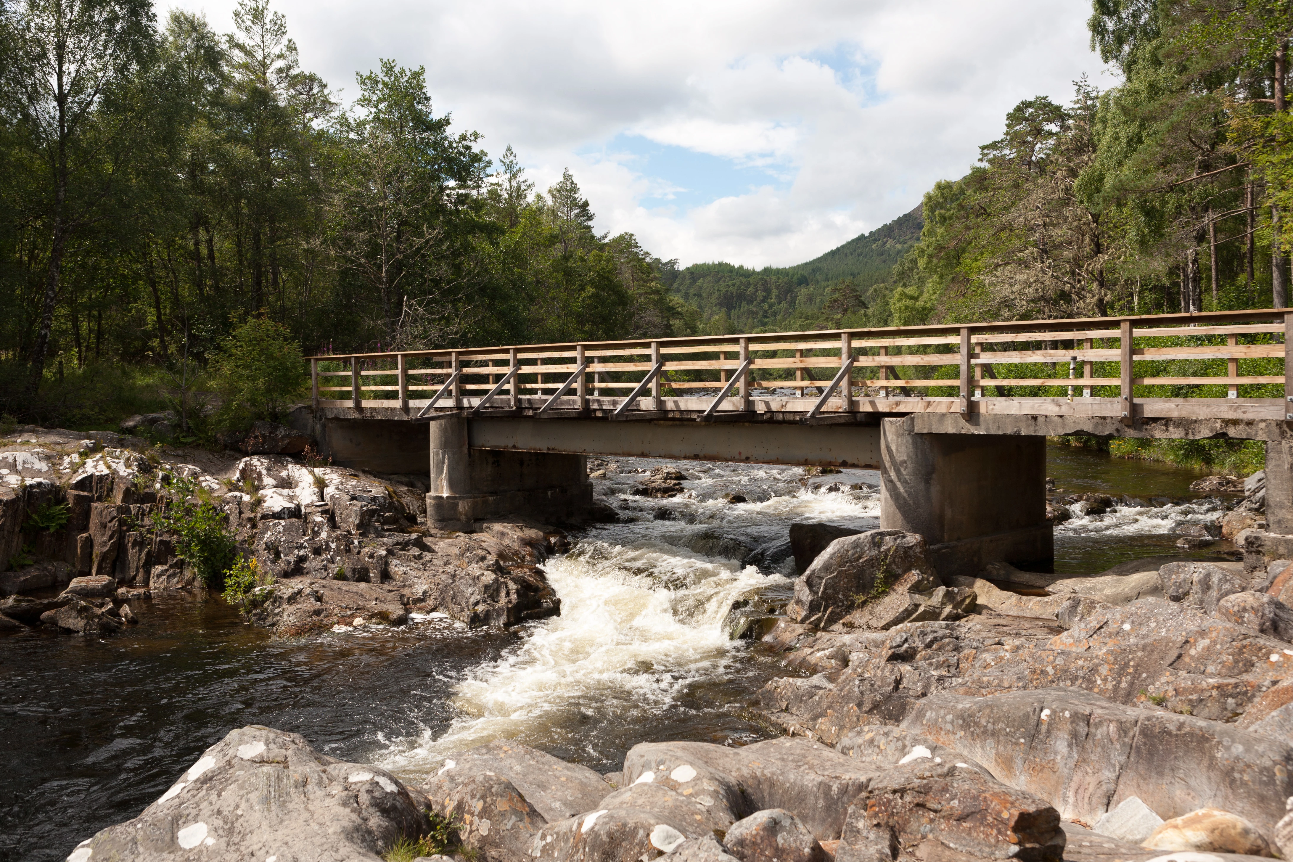 This weekend, I bring you a photo of a bridge in Glen Affric, Scotland which I snapped a few years ago. It is a beautiful part of the world, but a rather ugly concrete and steel structure supporting the bridge. Can you use your Photoshop skills to smarten it up with something more in keeping with the surroundings?