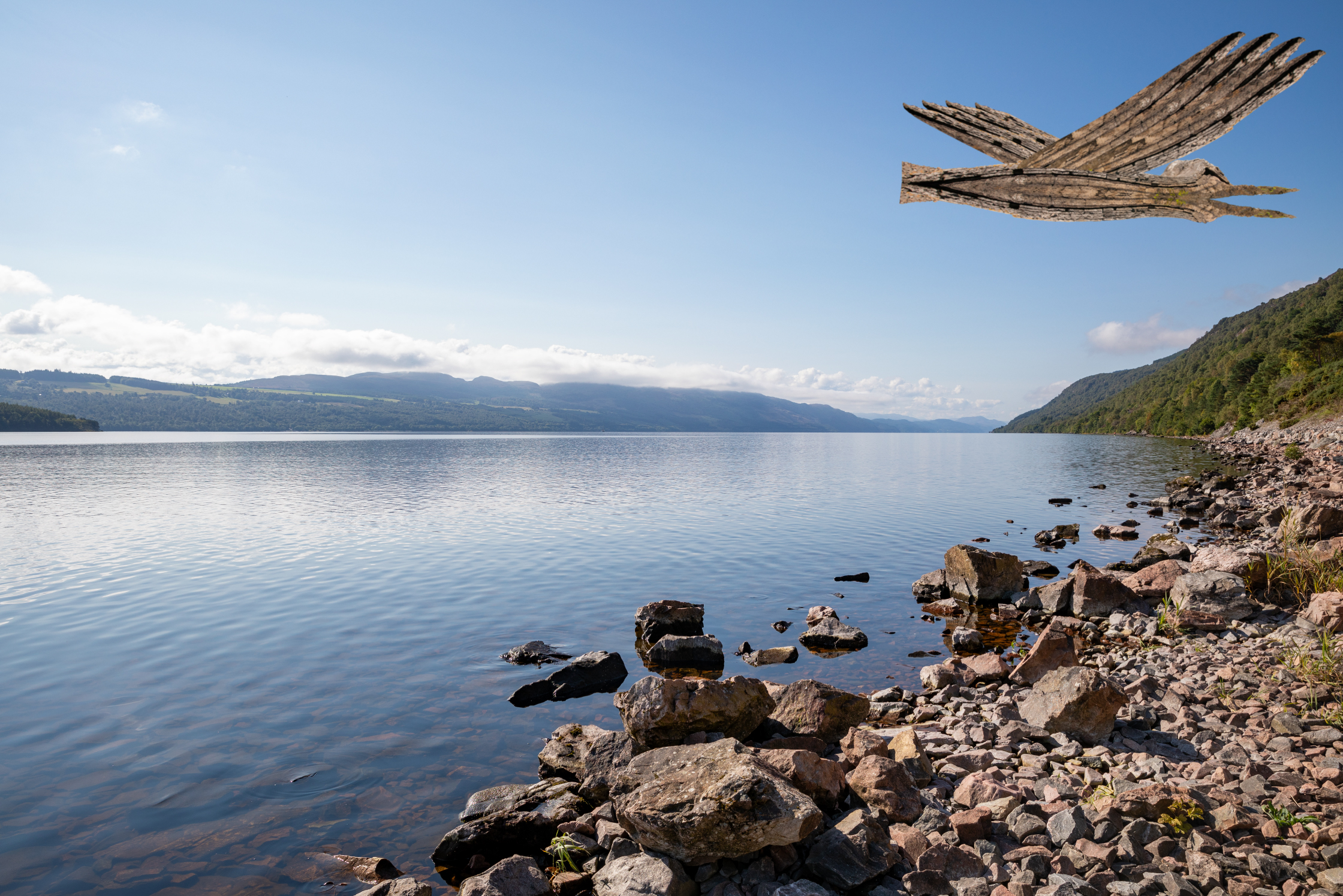 Fully grown and old as the hills, Nessie is well hidden but still keeping an eye on the loch, ever ready for a wee dip and hoping for a quiet future in it when everyone tires of searching, Dave.
