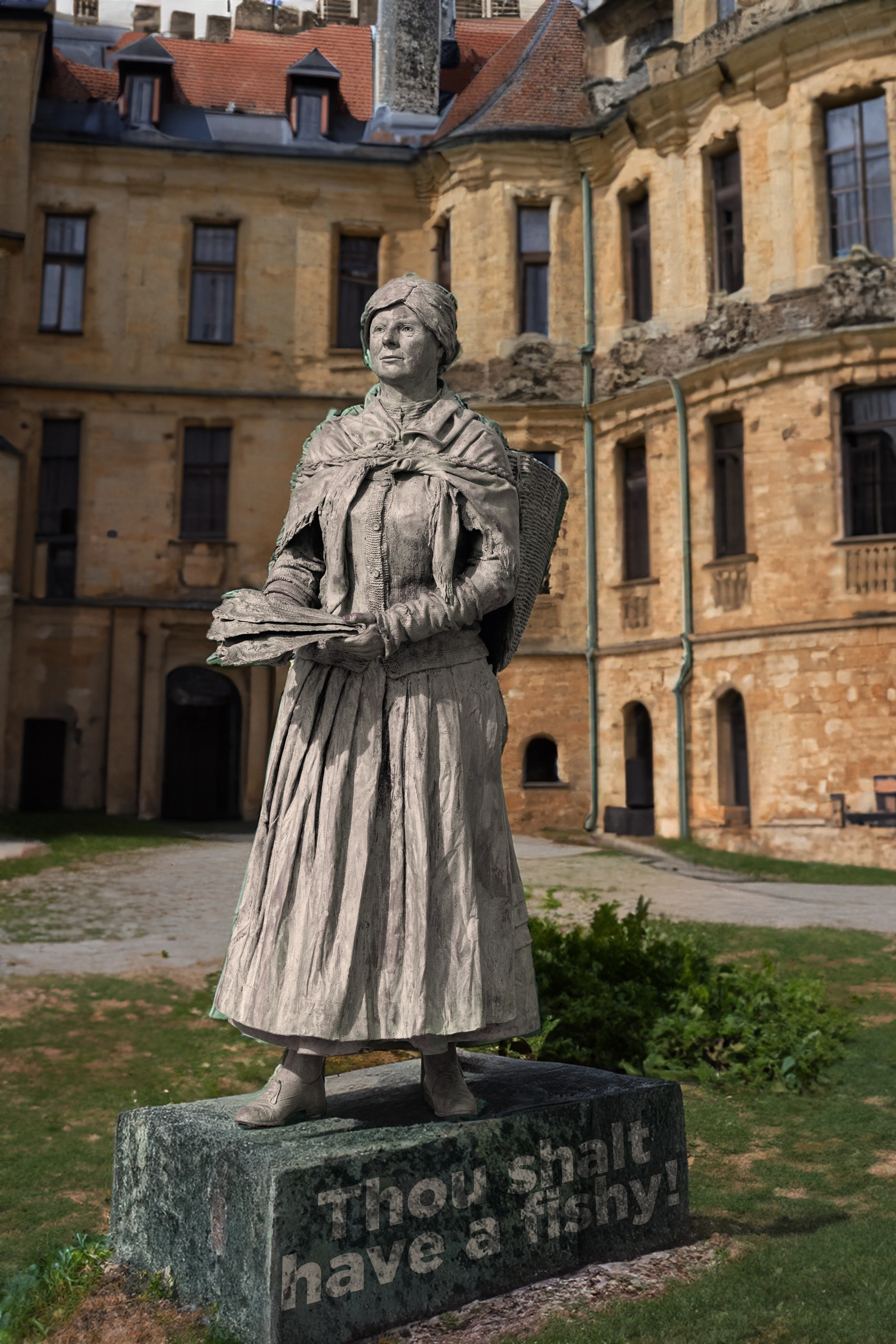 - Anything goes, as long as it meets the forum rules on decency, copyright, etc. and is respectful to the real fishwife on who the statue is based.