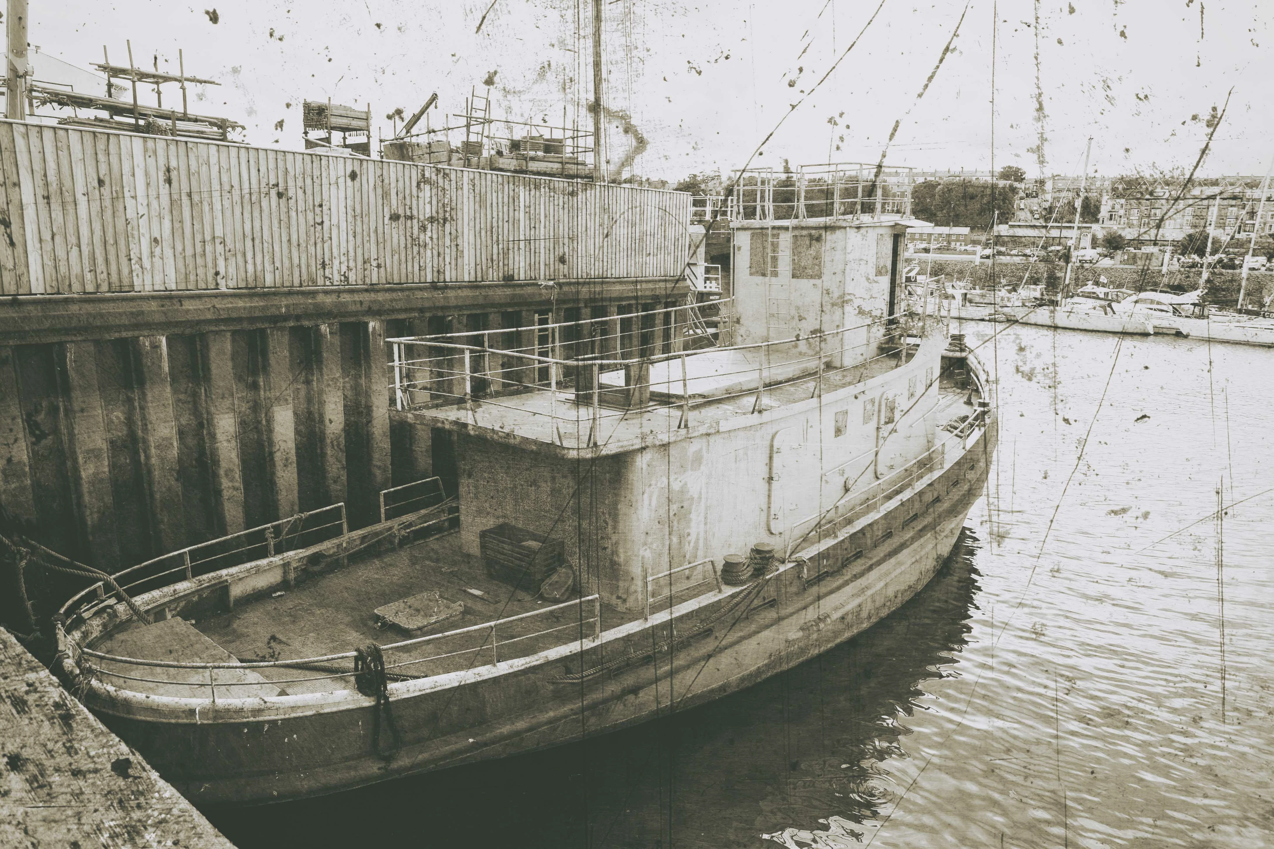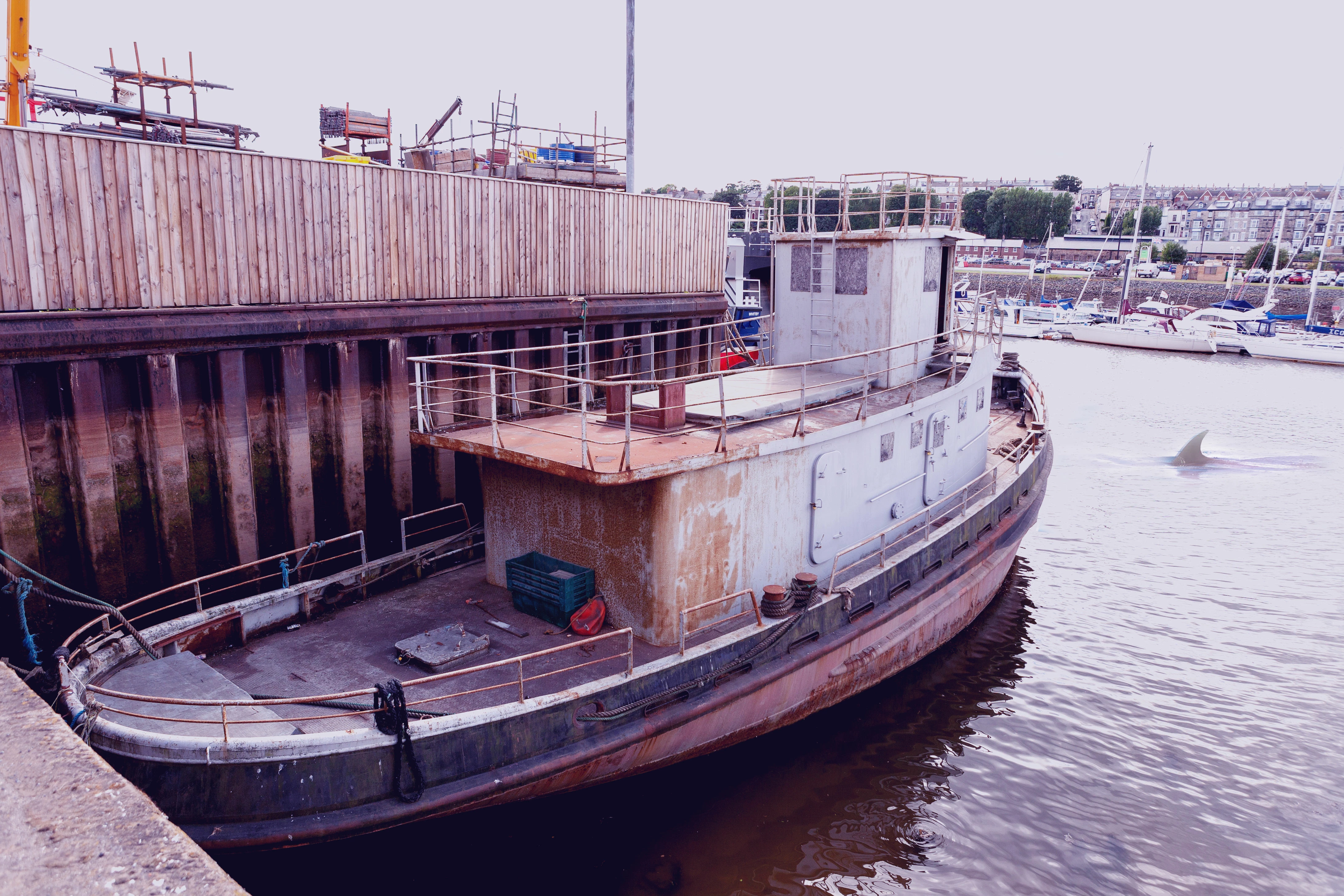 I snapped the boat below a few years ago whilst walking around Whitby, in the north east of England. It could be described as 'needing just a little attention'. Could your Photoshop skills help?