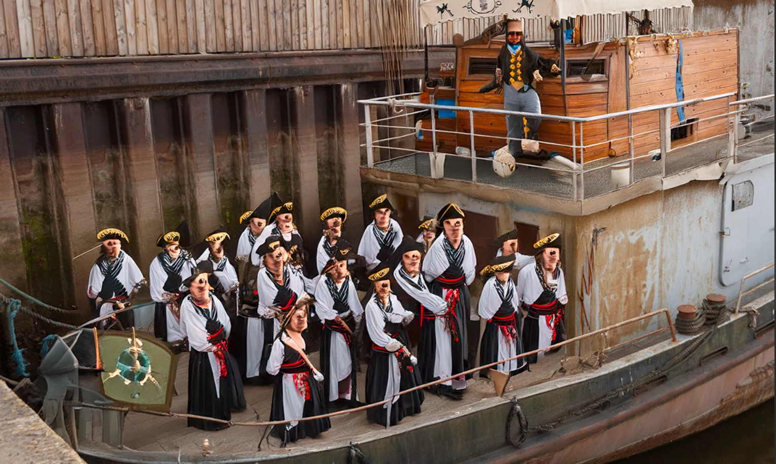 Blimey, a person could have nightmares after seeing faces like that.   I tried several times to first, add outboard motors to the back of the boat, and when that failed completely, I tried to remove the warf behind the boat and add water, and the results were as if I hadn't used any prompt at all.  I eventually used Content Aware Fill and got a way better result.  I have definitely been thinking that Gen Fill has been getting worse, and Didier's nightmare faces are not causing me to change my mind.