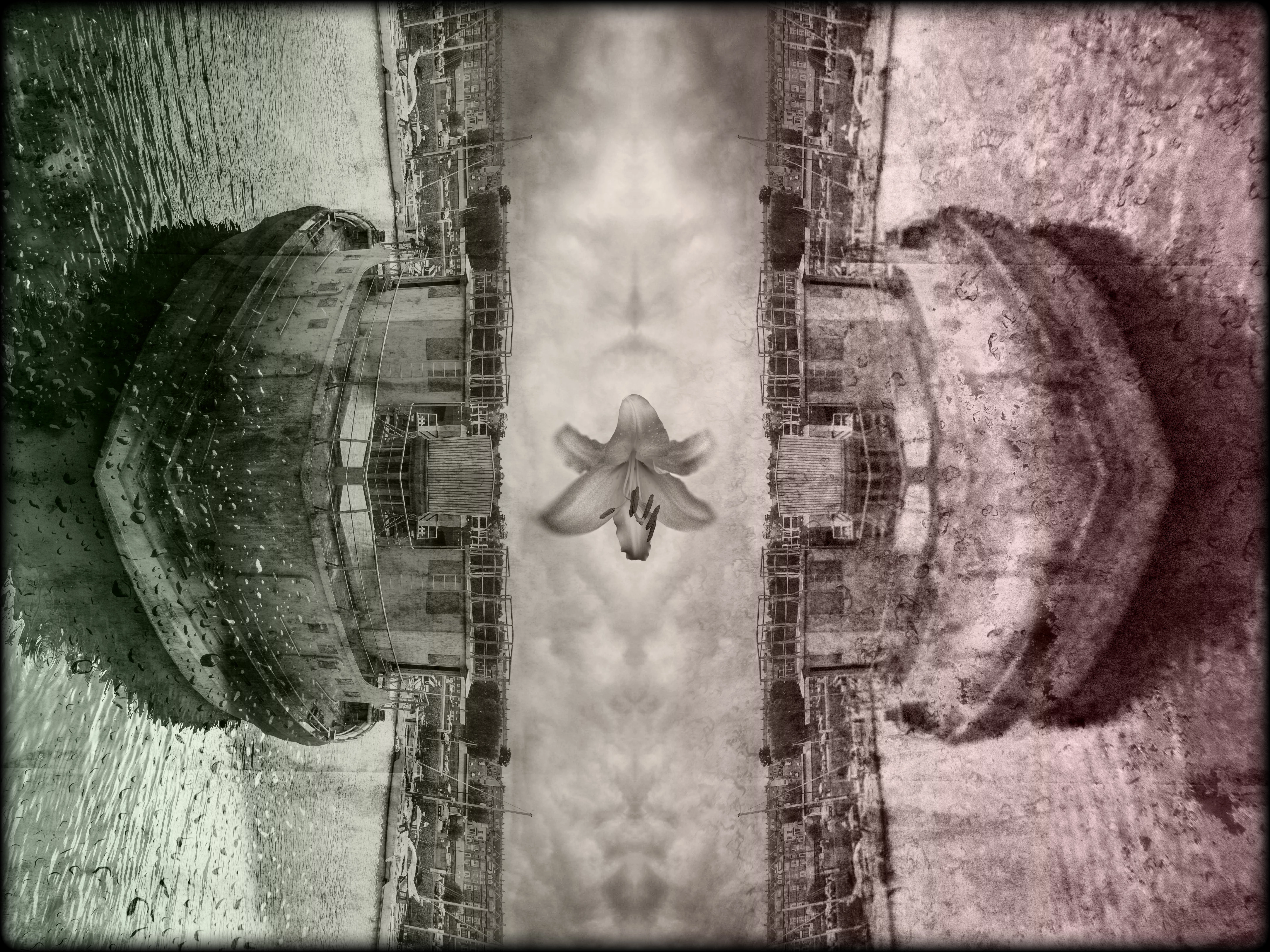 Dave, owing to the catch from the Dogger Bank the boat is lower in the higher water as seen by the shallower reflexion without the deepest shade, the lowering exactly countering the rising tide so the boat floats at the same height relative to the dock.