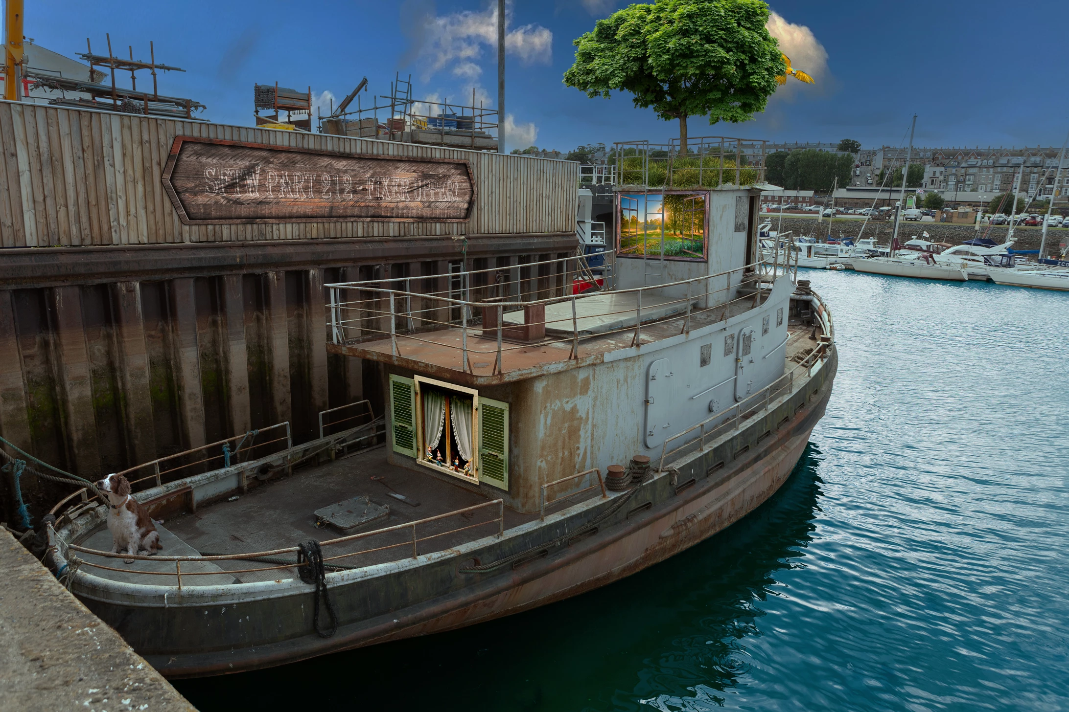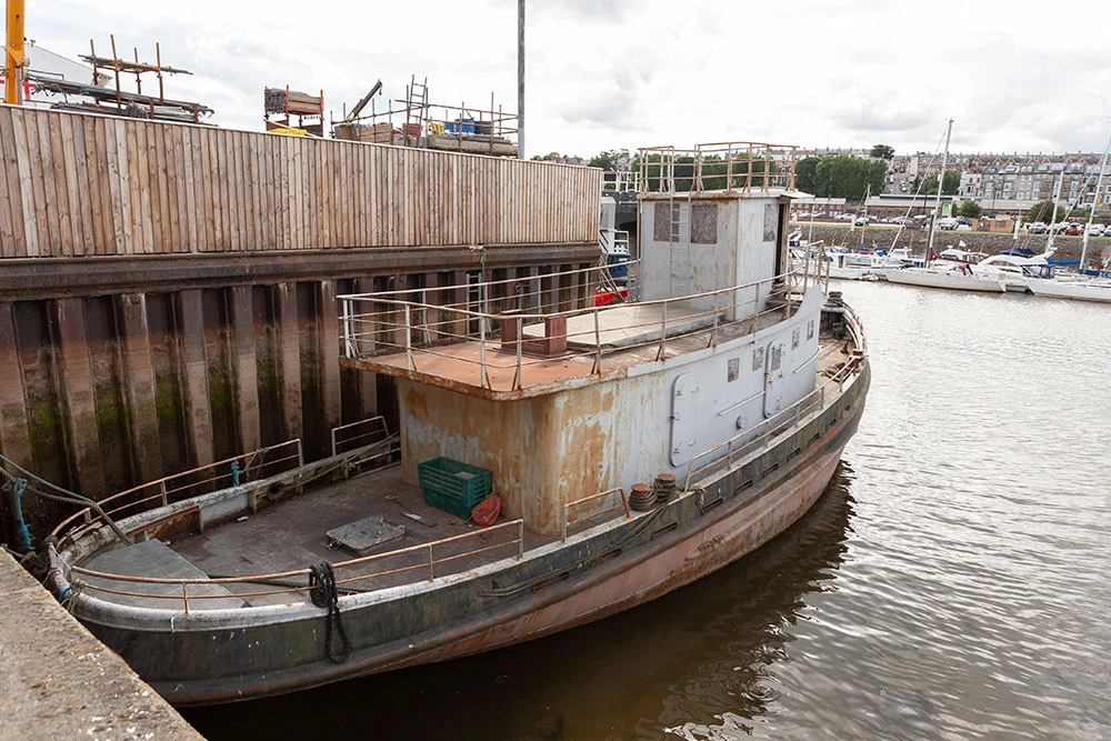 I snapped the boat below a few years ago whilst walking around Whitby, in the north east of England. It could be described as 'needing just a little attention'. Could your Photoshop skills help?