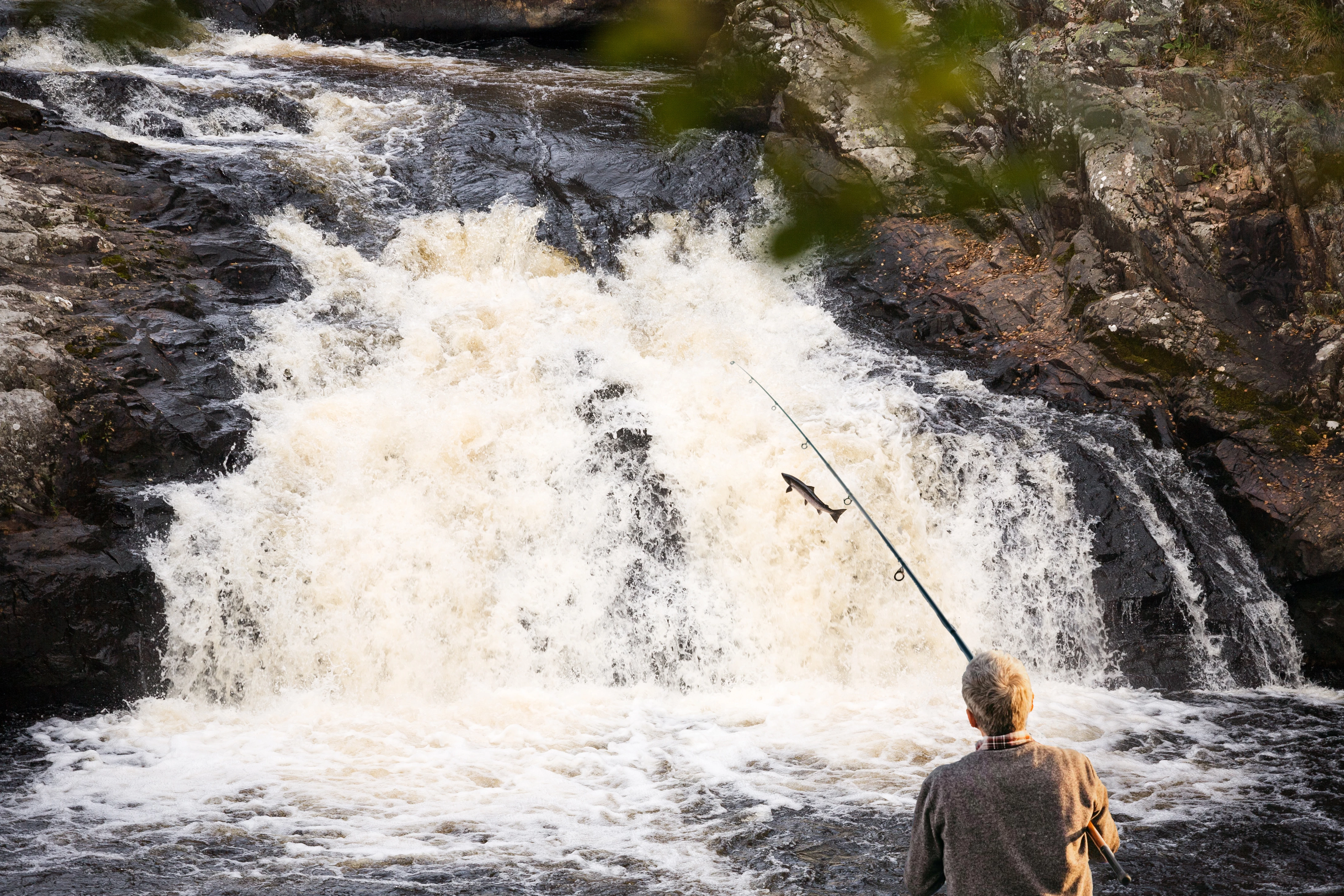 This week we have a salmon leaping at the Falls of Shin in Scotland. The scientists and naturalists tell us that they do this to spawn at the place they started out in life as small eggs. Of course, you may be able to show us an alternative reason for this salmon's leap...