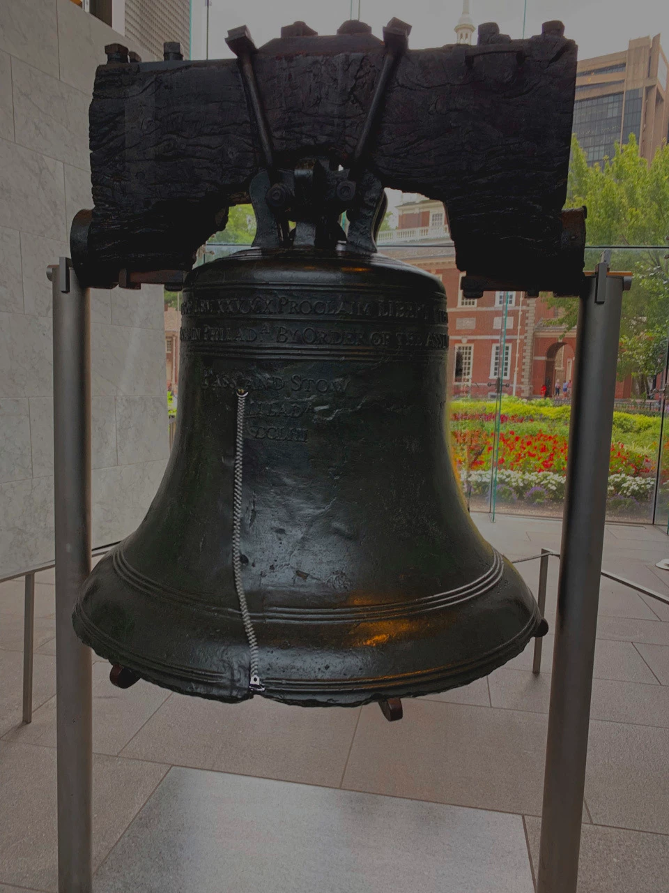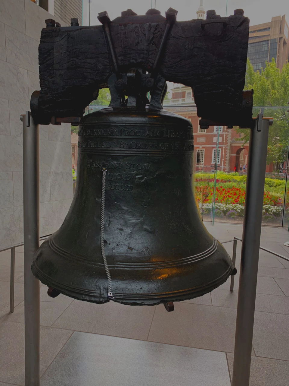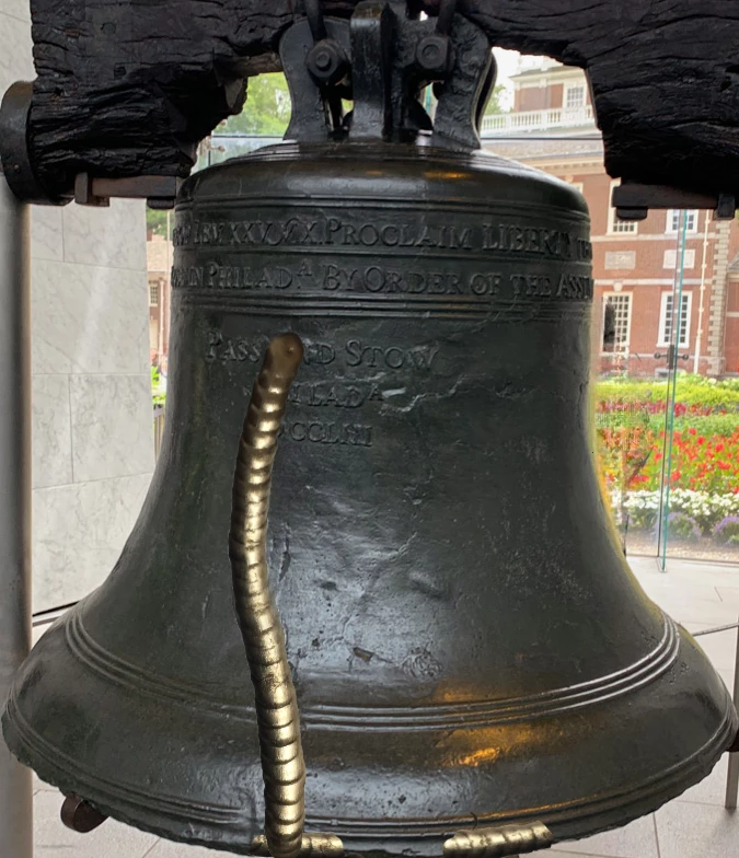This is a photo I took of the Liberty Bell while visiting Philadelphia. It was made in 1751 and now resides across the street from Independence Hall in the Liberty Bell Center. It's the symbol of liberty and has been used by abolitionists, women's suffrage advocates, and Civil Rights leaders. The inscription says, "Proclaim Liberty Throughout All the Land Unto All the Inhabitants thereof".