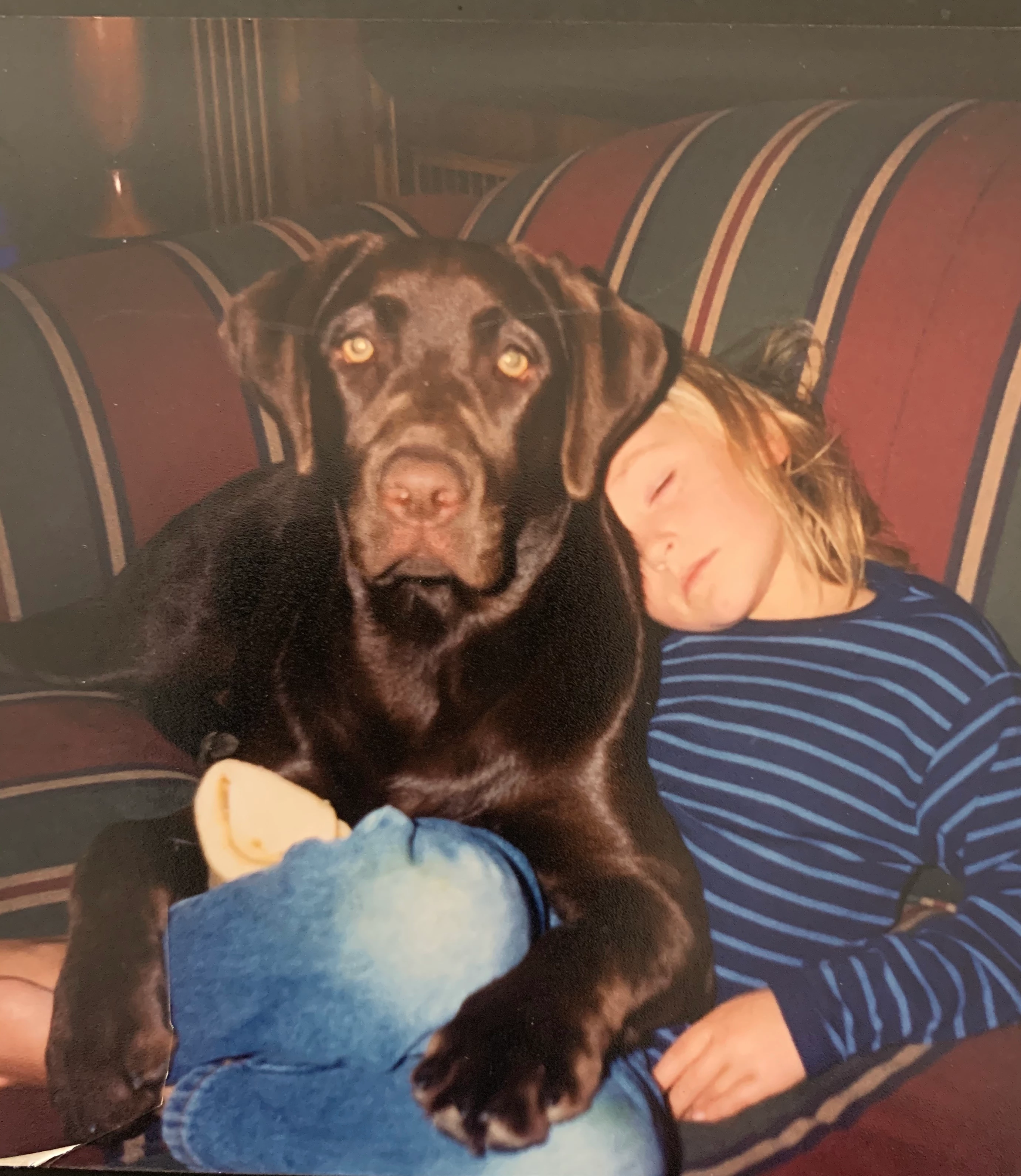 Ha! You remembered her name!   I named her Ursula because she looked like a brown bear when she was a puppy..  Yes Labs are water dogs for sure. They even have webbed feet! My Ursula (RIP) would swim in my pool every day, even in December. Here she is with my daughter years ago: