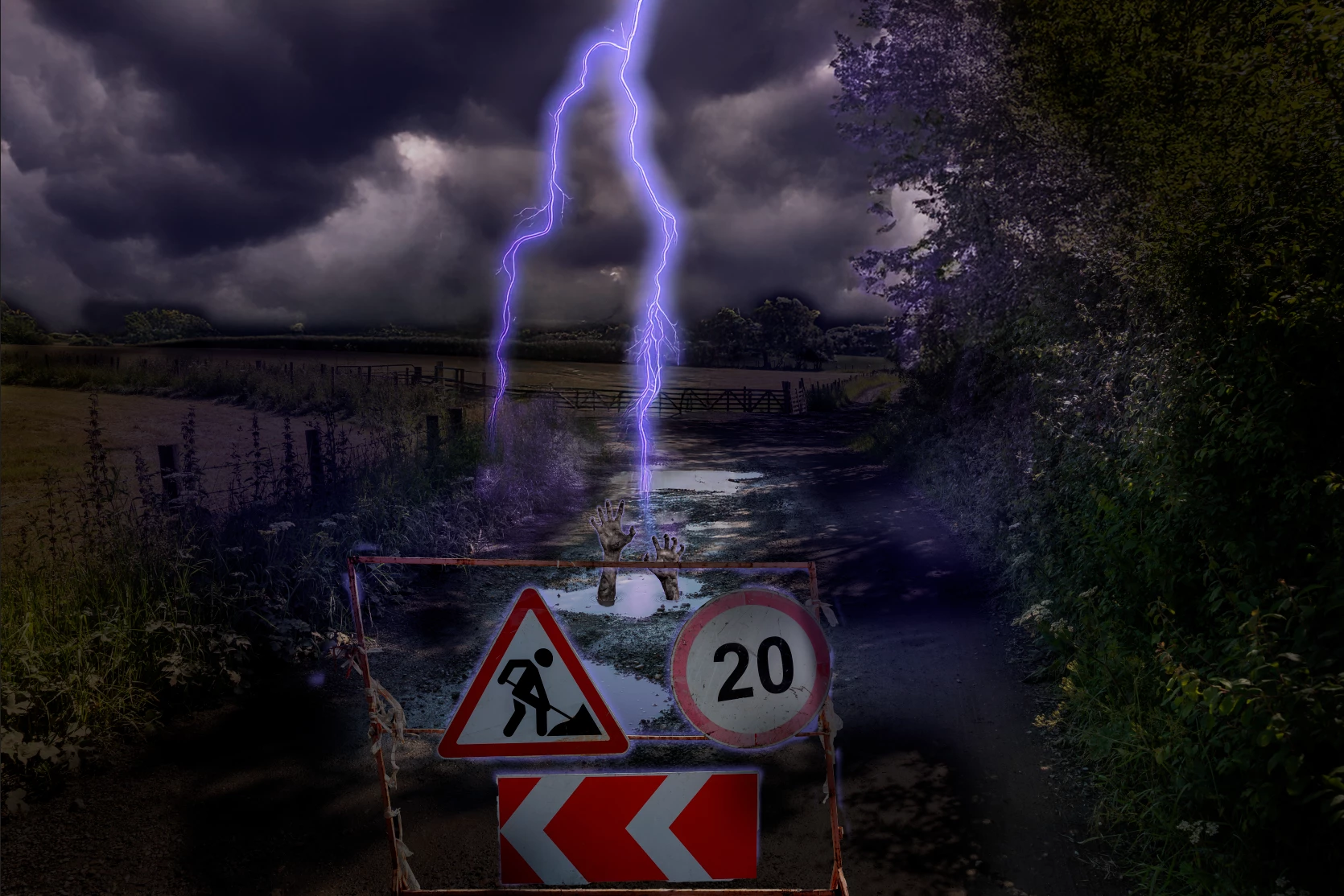 This week we go outside to a country lane with four nice puddles. How will you use them, will it be a happy splashing scene, something darker for Halloween, or something else entirely?