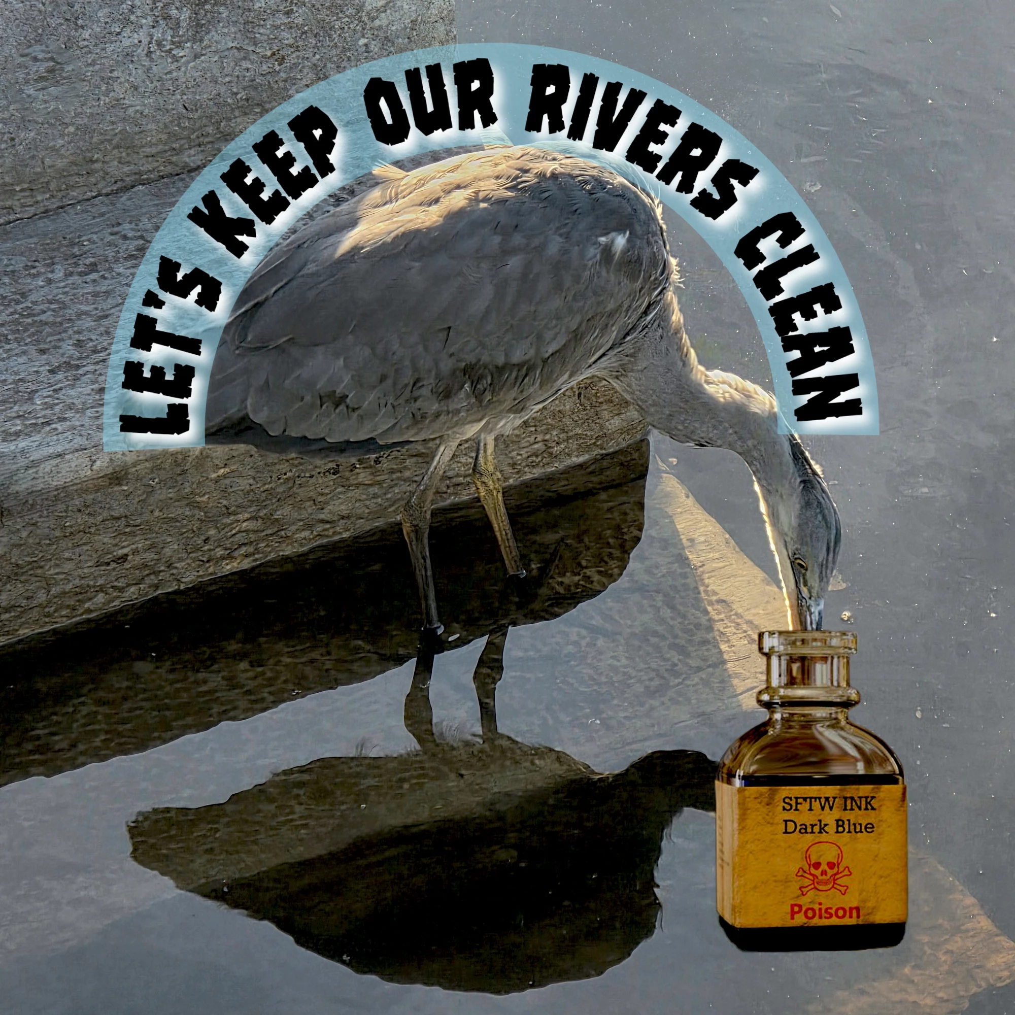 I was out for a walk today and saw this Heron in the river. Recently there has been some concerns about the water safety of the river. The bottle seemed fitting for a social post or something.