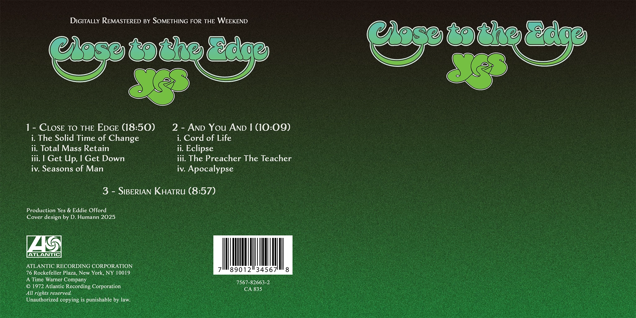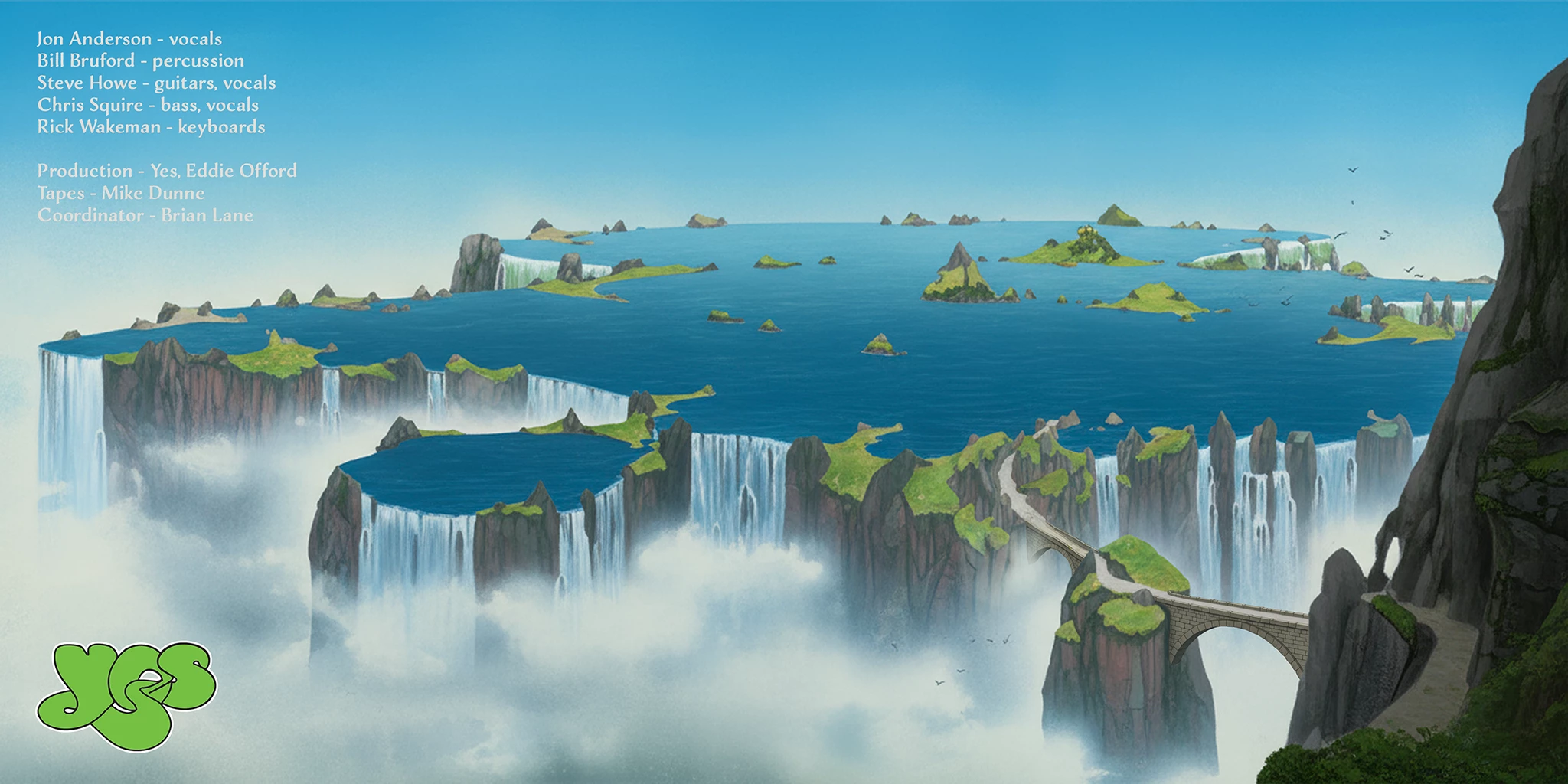 In my opinion, one album that exemplifies the Prog Rock era is a classic from 1972 entitled: Close to the Edge from the band Yes. The original album cover was a fold-out. It had a beautiful fantasy landscape on the inside of the sleeve. The cover design was created by Roger Dean who I found to be a great source of inspiration. However, while I love this album and the artwork, I always thought that this cover was a little sloppy from a design standpoint. That is no criticism on Roger Dean; he's an exceptional artist and designer. Many albums from that era have incredible artwork but have graphic design that feel rushed and poorly executed. There were likely various reaons for this, not the least of which were short deadlines, small fees, and technical constraints. No Photoshop back then! They had to do everything in traditional media, e.g. pen and ink, sable brushes, airbrush, etc. But I digress...  I've taken on the task of creating a cleaner and slightly more coherent version of Close to the Edge. I've attempted to do this without straying too far from Yes and Roger Dean's original vision. The album cover design was changed several times as it transitioned from album to cassette tape to CD. I had an LP of this at one time. I think this is what it looked like...