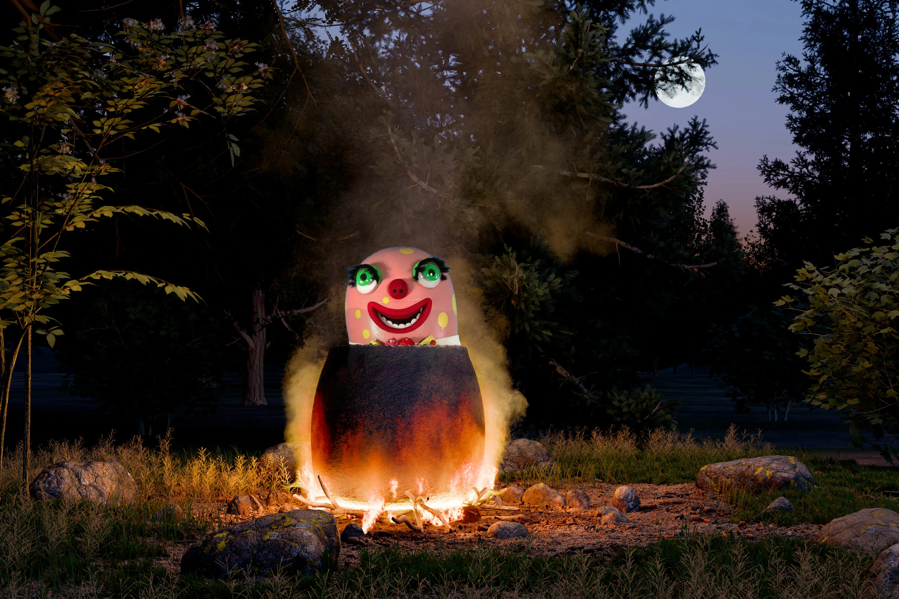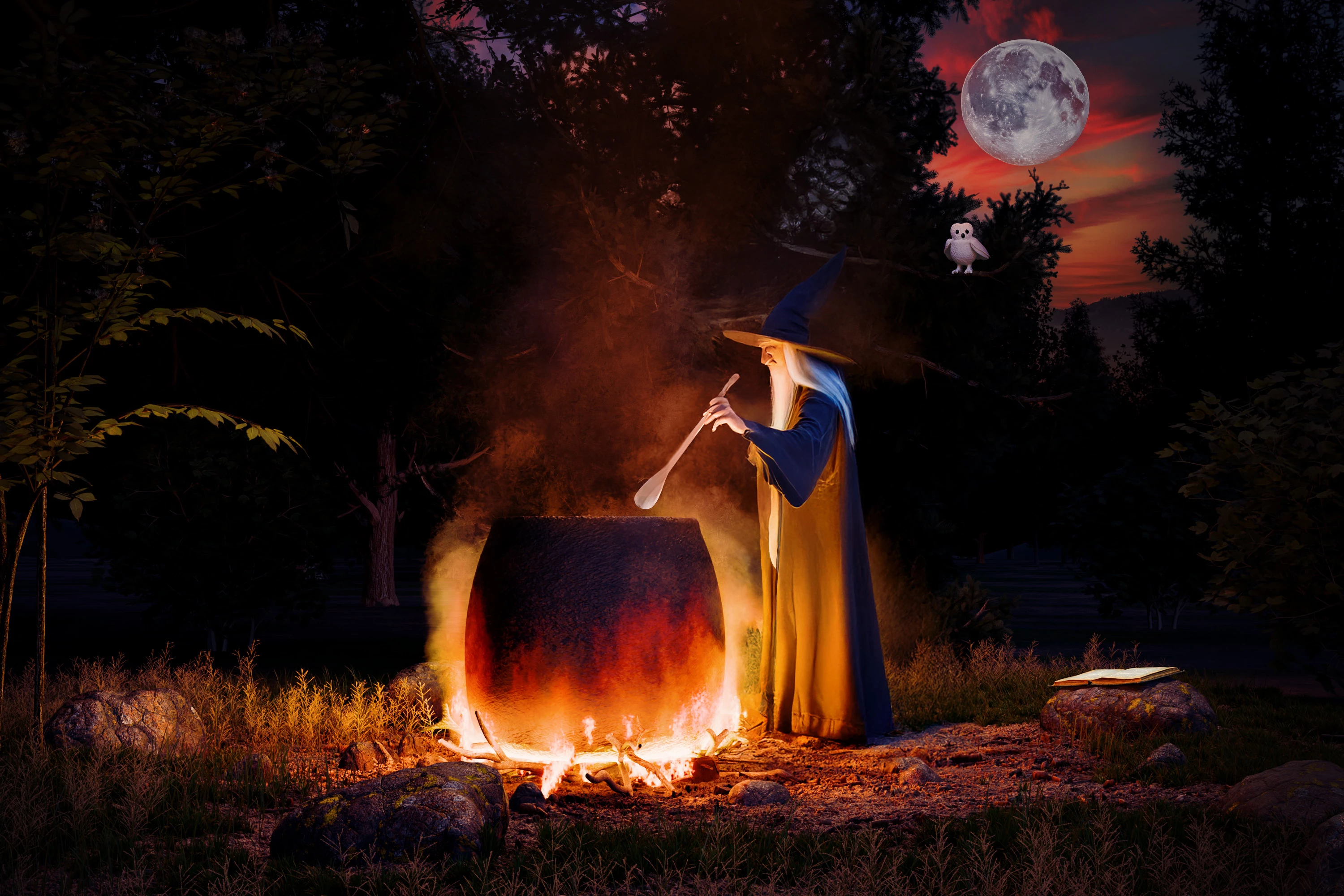 During the two week period of this challenge, we have Halloween coming up. I got to thinking of Shakespeare's witches in Macbeth chanting 'Double, double toil and trouble; Fire burn and cauldron bubble'. So, I've built a cauldron scene in Blender 3D using a fluid simulation for the fire and smoke, textured it in Adobe Substance Painter and finished the rendered image in Photoshop adding the moon surface from a NASA image.. What can you now do to bring it to life? For those that enjoy some realism, it poses challenges with the lighting, from the fire, and also the retention of the smoke and steam in front of any mid ground subjects. For other styles - just go for it. 🙂
