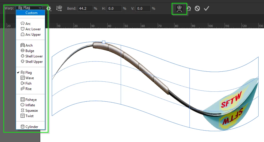 Free Transform Warp would be an easy way to make the dart curl like a tenticle.