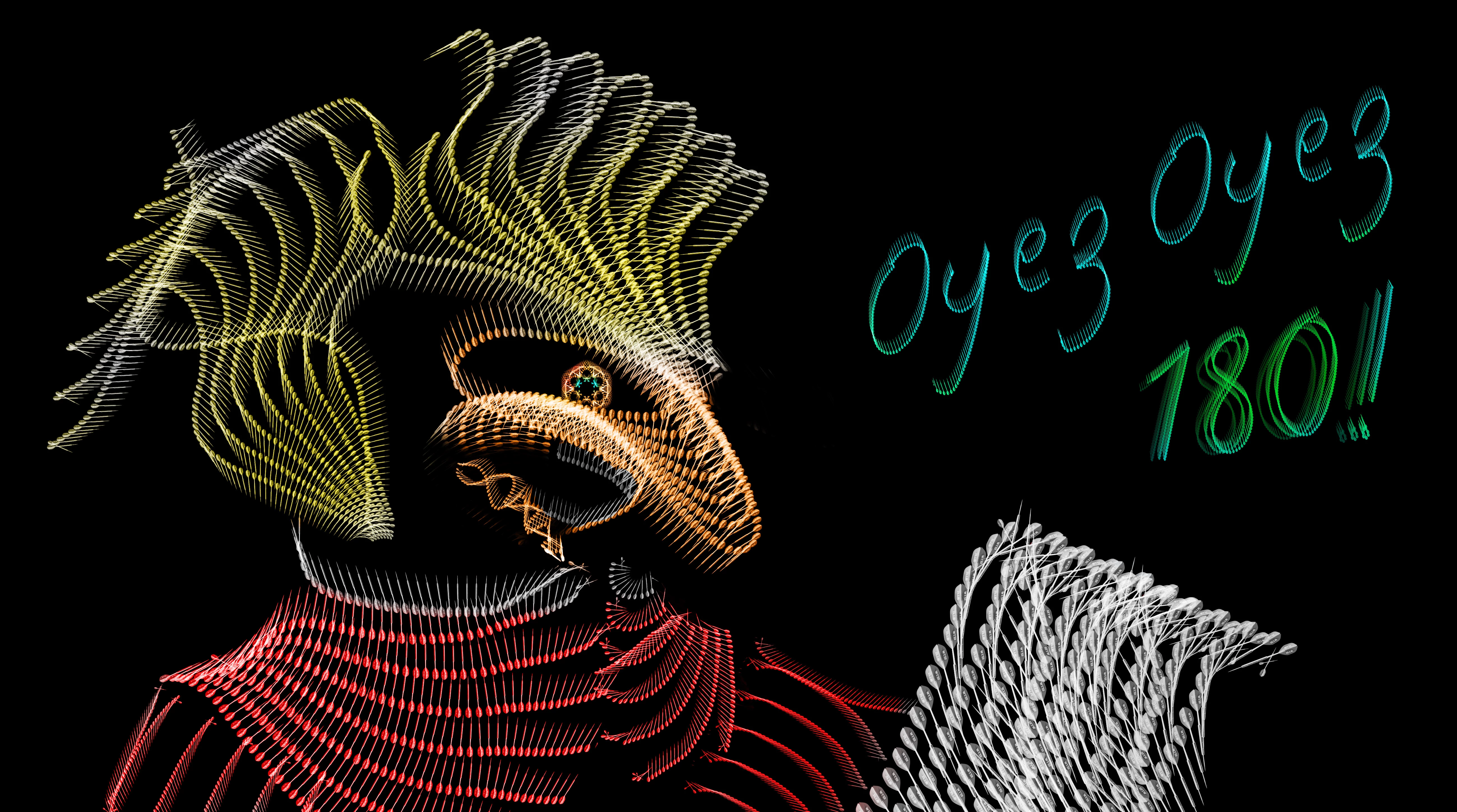'One hundred and eighty', the highest score with three darts, became famous for the way it was called out by Russ Bray, a professional referee with a unique style to his declaration of the score. So this week, I bring you three darts (actually a 3D render). What will you make with them, 180 or something else entirely?