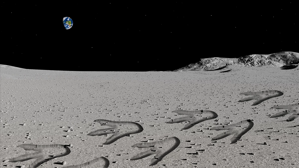I've produced a 3D render simulating the moon surface. Can you show us what it will look like when man/woman returns.