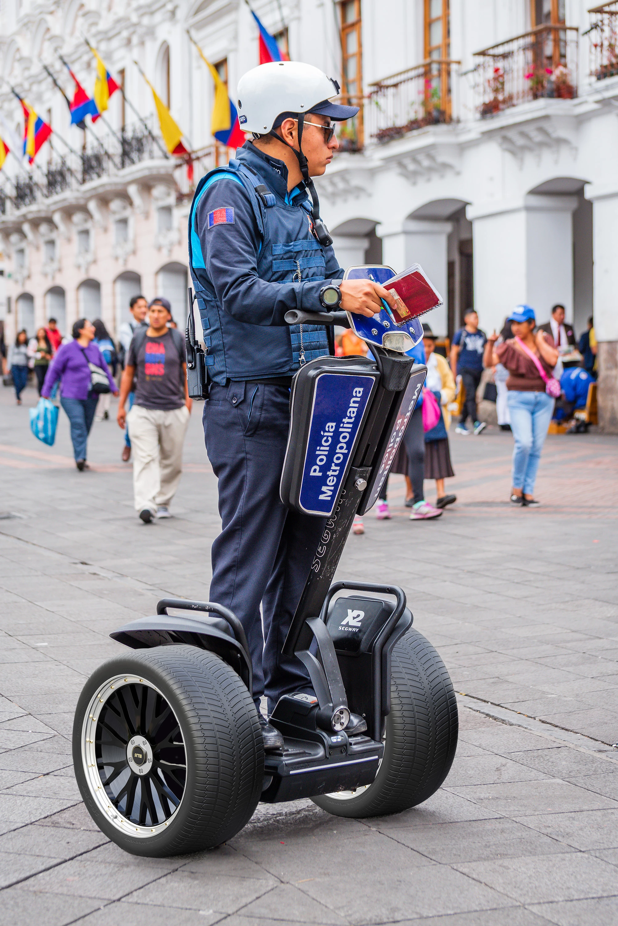 Thank you, Dave. It's just your wheels replacing the ones in the original picture, and the requisite grounding shadows. They actually do have policemen going around on Segways in Quito!