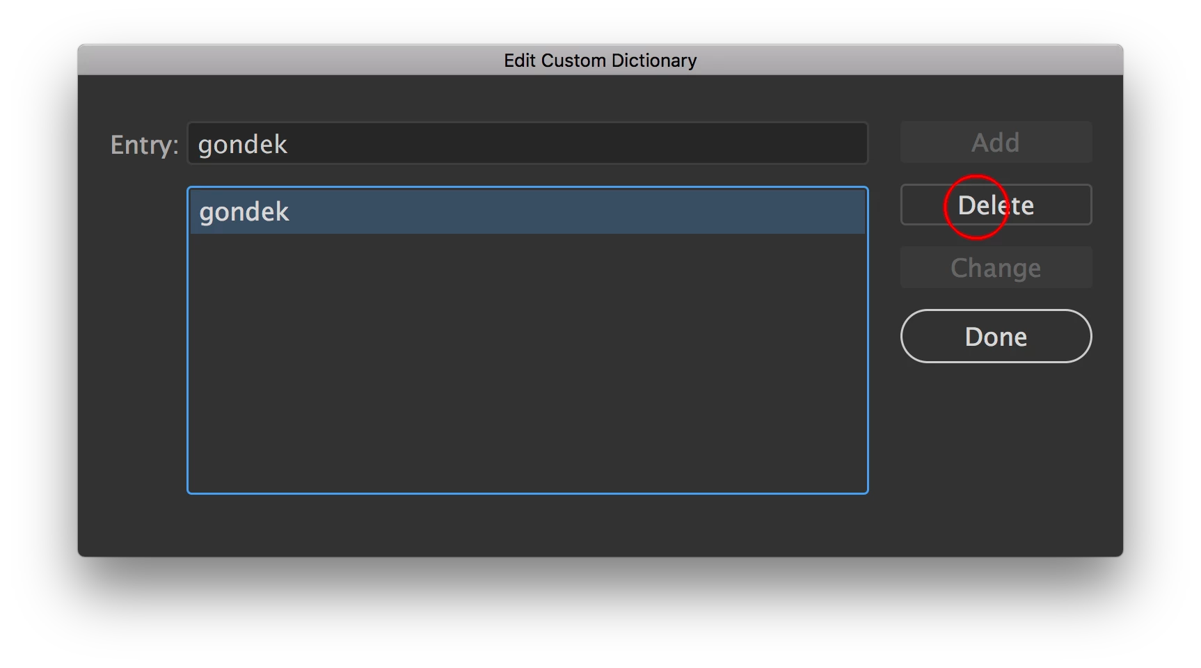 I mistakenly hit the "Add" button while doing spellcheck on an improperly spelt word. How do I remove the improperly spelt word from the list?