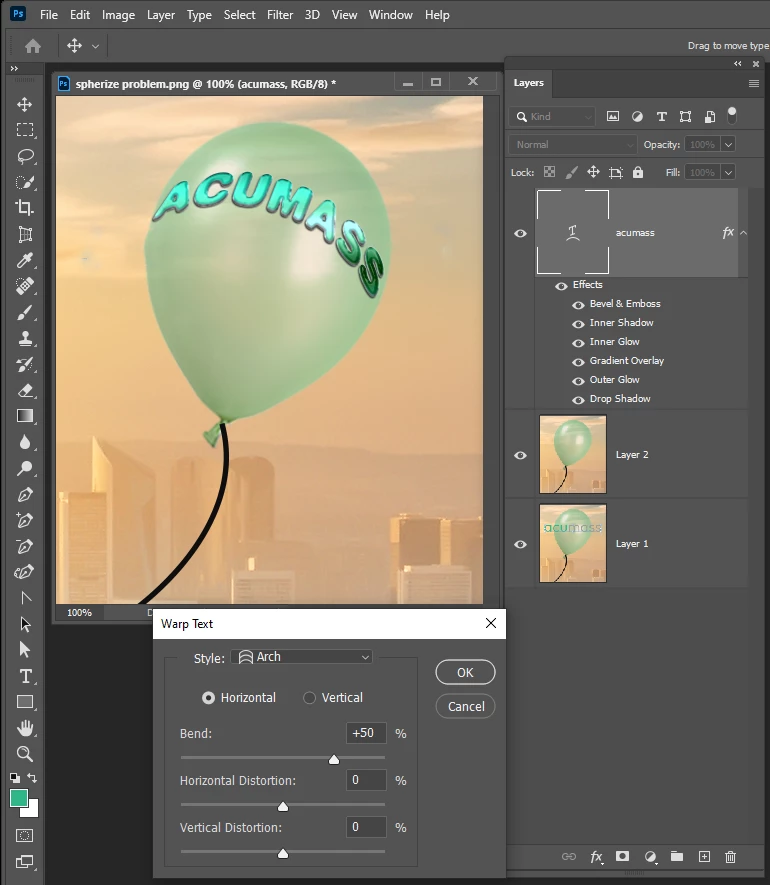 I agree with JJMack. Warp text seems like a better fit for this than spherize. I prefer to NOT rasterize text if possible. It can't be edited again if you rasterize.