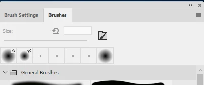 I can't change the brush size using either the shortcuts { & } or the Brushes menu. In fact, the brush size is grayed out.