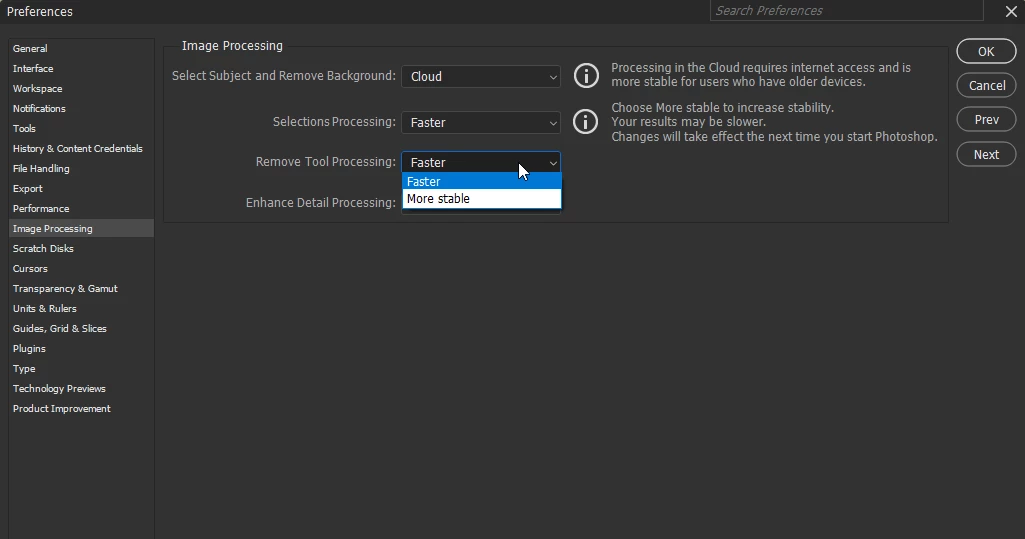 When PS removes the spot/area quickly, there is a very slight uptick in GPU activity. When the popup appears and the progress bar crawls, PS pegs the GPU at 100% for several seconds. (Pegging a 5070 TI for 10-20 seconds is a LOT of graphics processing.)