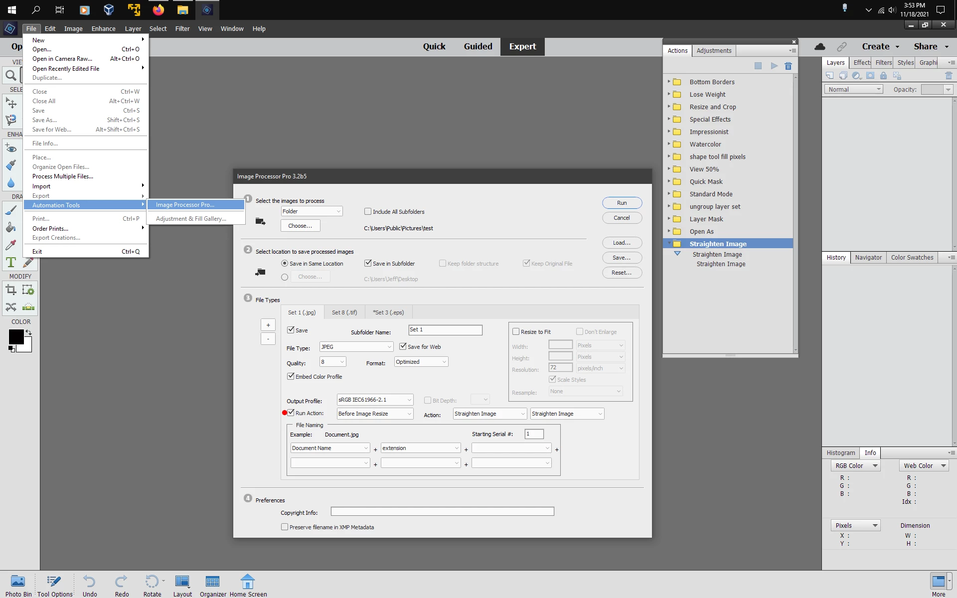 2. Is there a way to use scripts in elements to batch edit a folder of images with a set of actions?