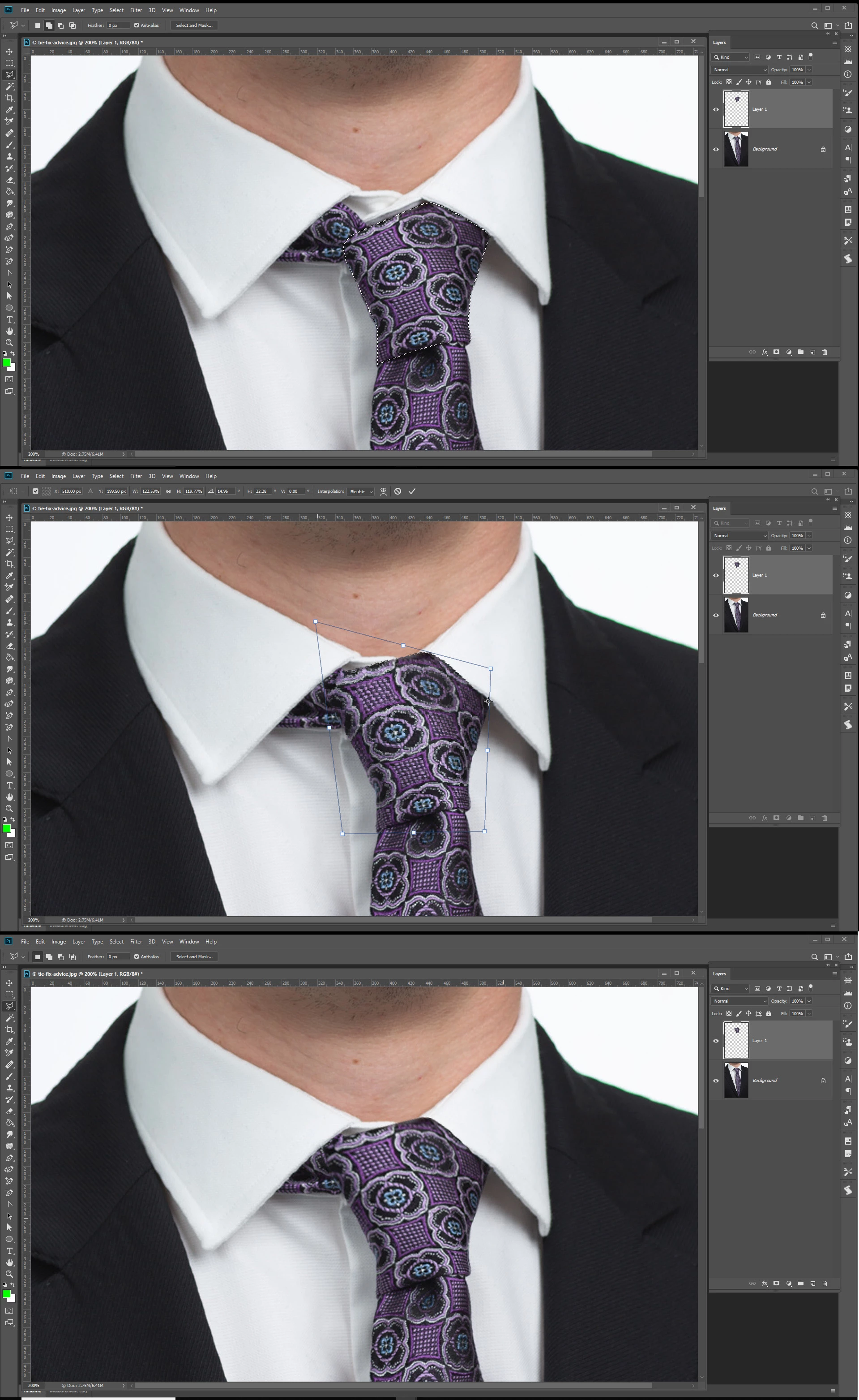 Straightening a tie in a photo?