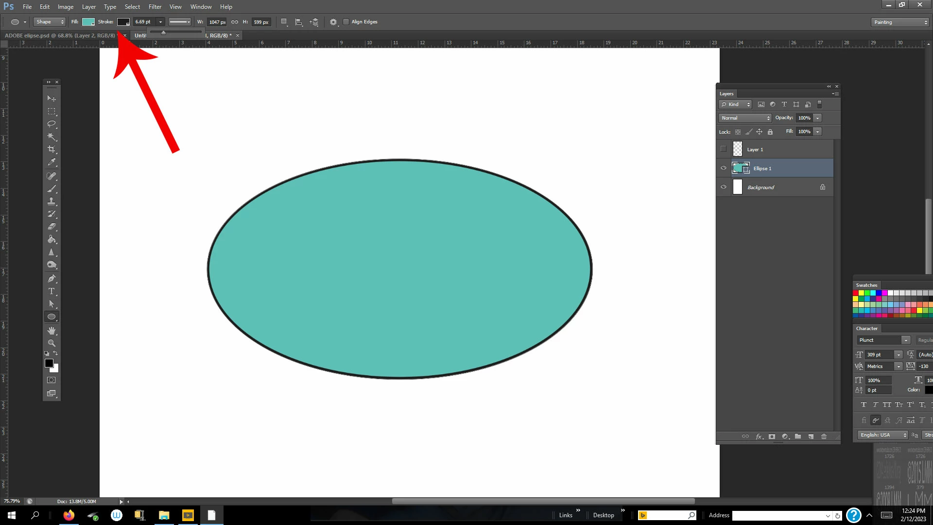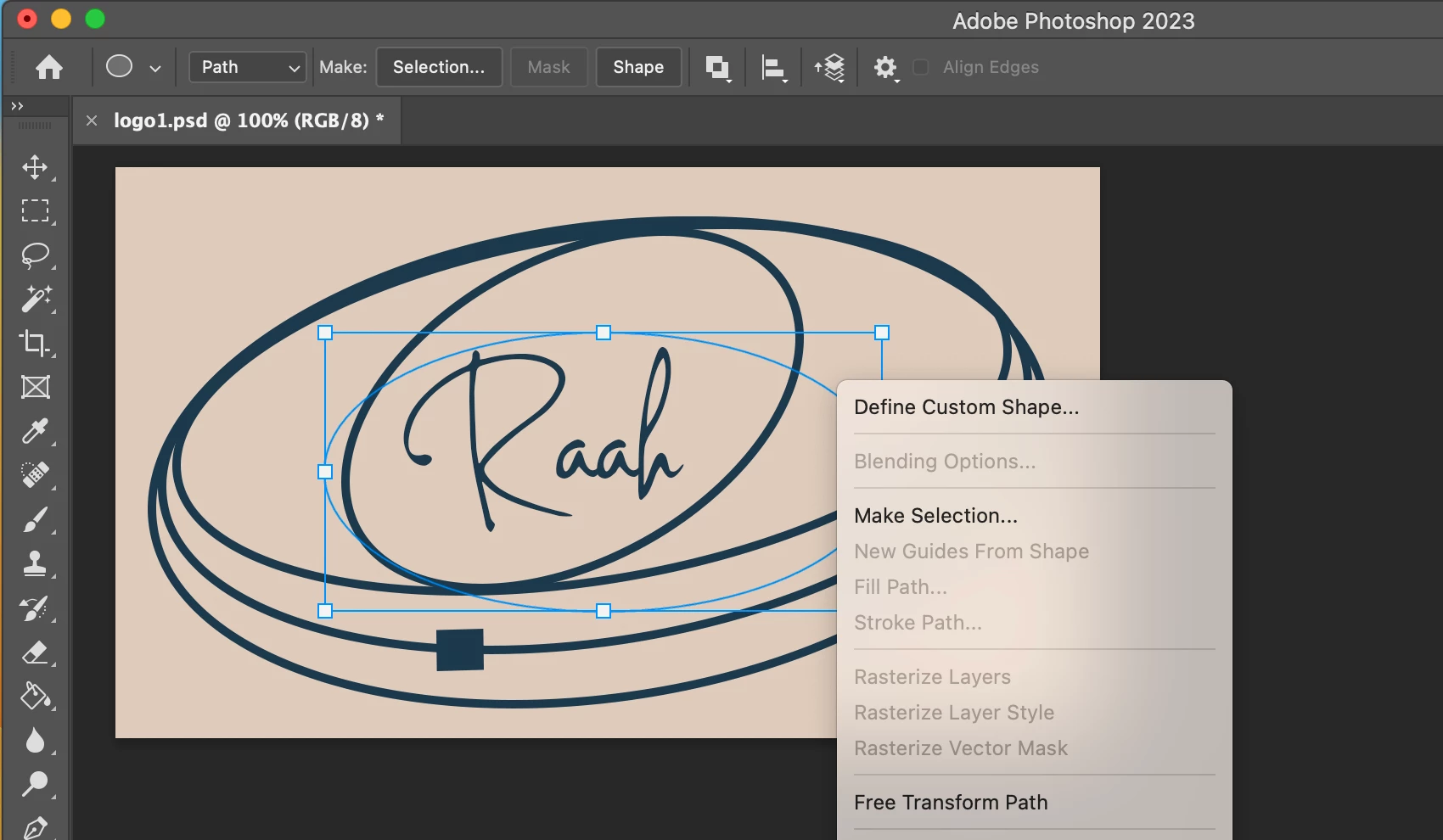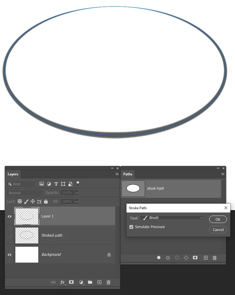 Stroke an ellipse with a brush in PS 2023 on mac