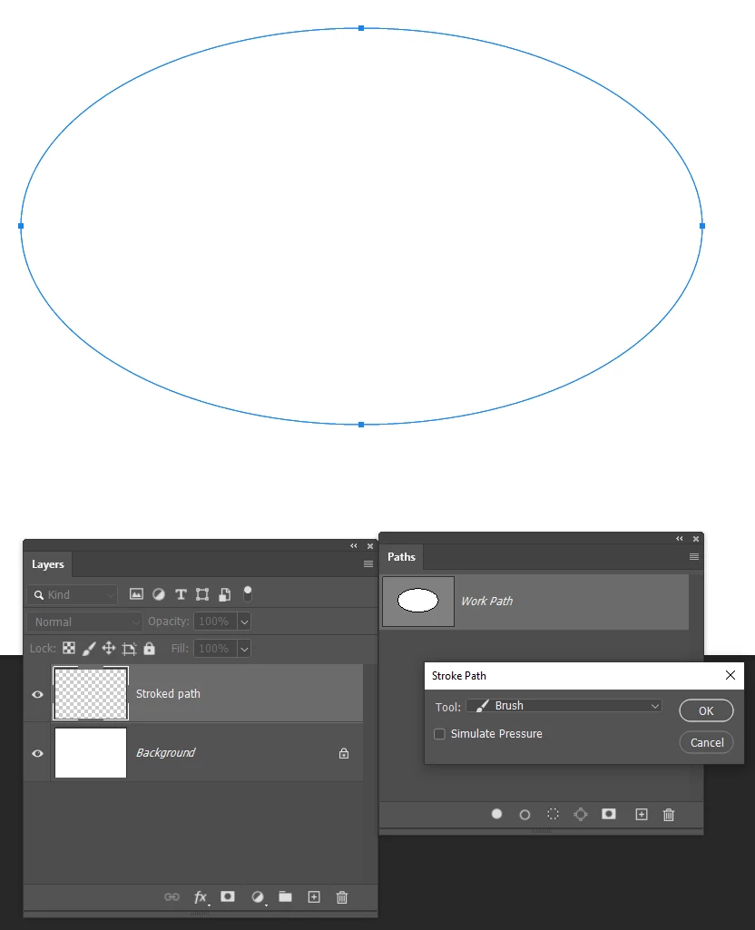 I'm a very basic PS user, and have not been able to figure this out. I want to stroke an ellipse path with a brush stroke. I've tried watching Youtube tutorials on this and still haven't been able to figure it out. I've made an elliptical path, and then tried to right click to "stroke path" but it is always greyed out. What am I doing wrong? Thanks for your help!