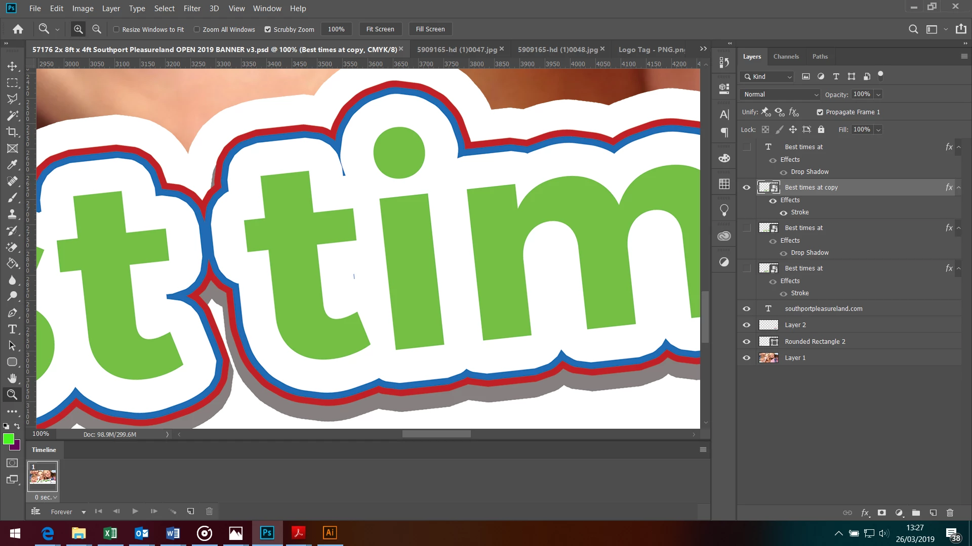 I am creating some artwork or a billboard ad and so the text is very large. I am trying to add thick strokes to the font but when I zoom in to 100% they are very rough looking?