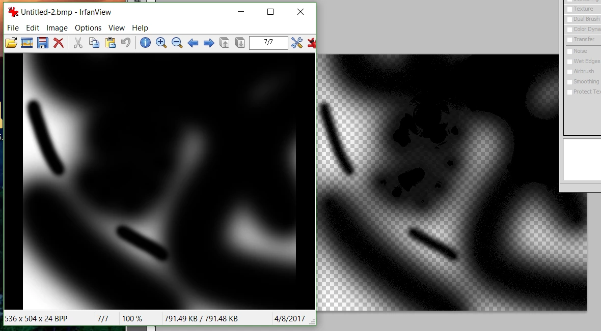 On both computers were getting this strange stuttering artifacts when using the brush tool. Normally its a smooth gradient/line universally, but sometime this morning we started to get this noise in using the brush.