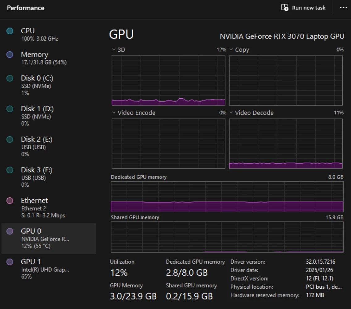 I'm using RTX 3070 with i9-10900k on 2560*1440 resolution screen. The additional informations were attached below.