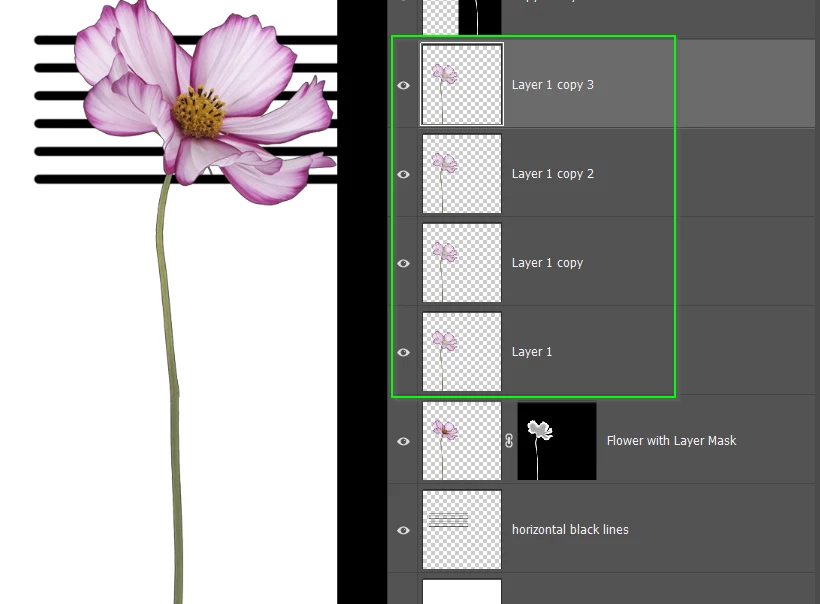 I have placed a layer with black lines behind the flower, and we we can see the lines where the flower is partially transparent. I'm guessing this is what you are seeing.