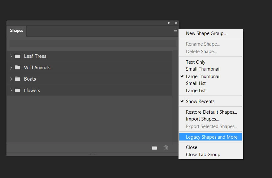 Trying to use custom shape tool but all I have on my drop down shape menu is boats, flowers, animals no other symbols, have googled but failing miserably on where to find my symbols. Many thanks.