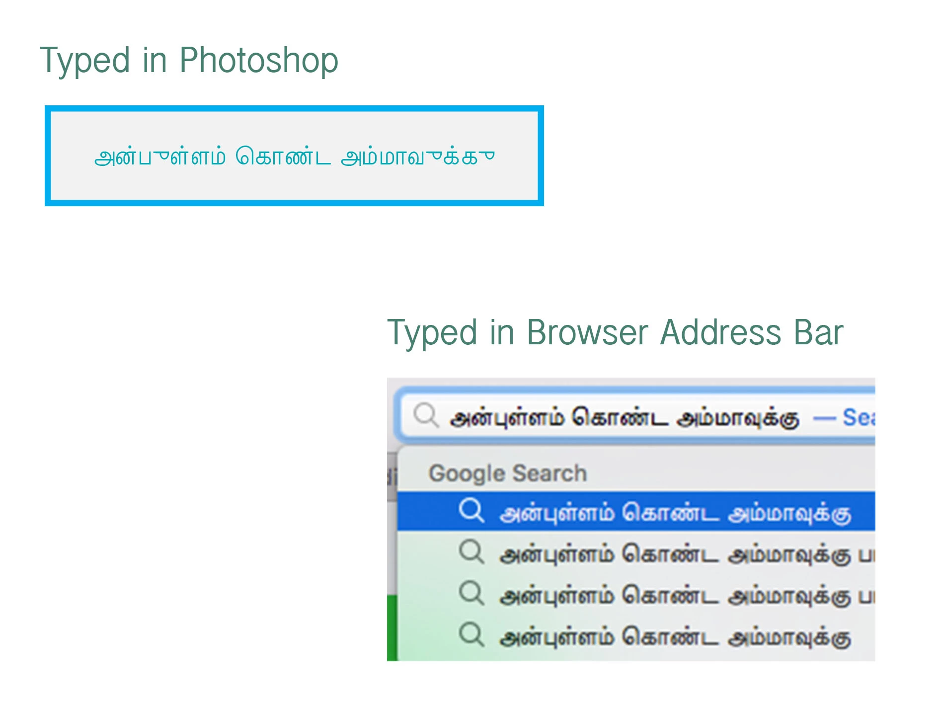 The image attached above is to show how hard is to work with Tamil Fonts in Photoshop and the other Adobe Tools such as Illustrator and InDesign.